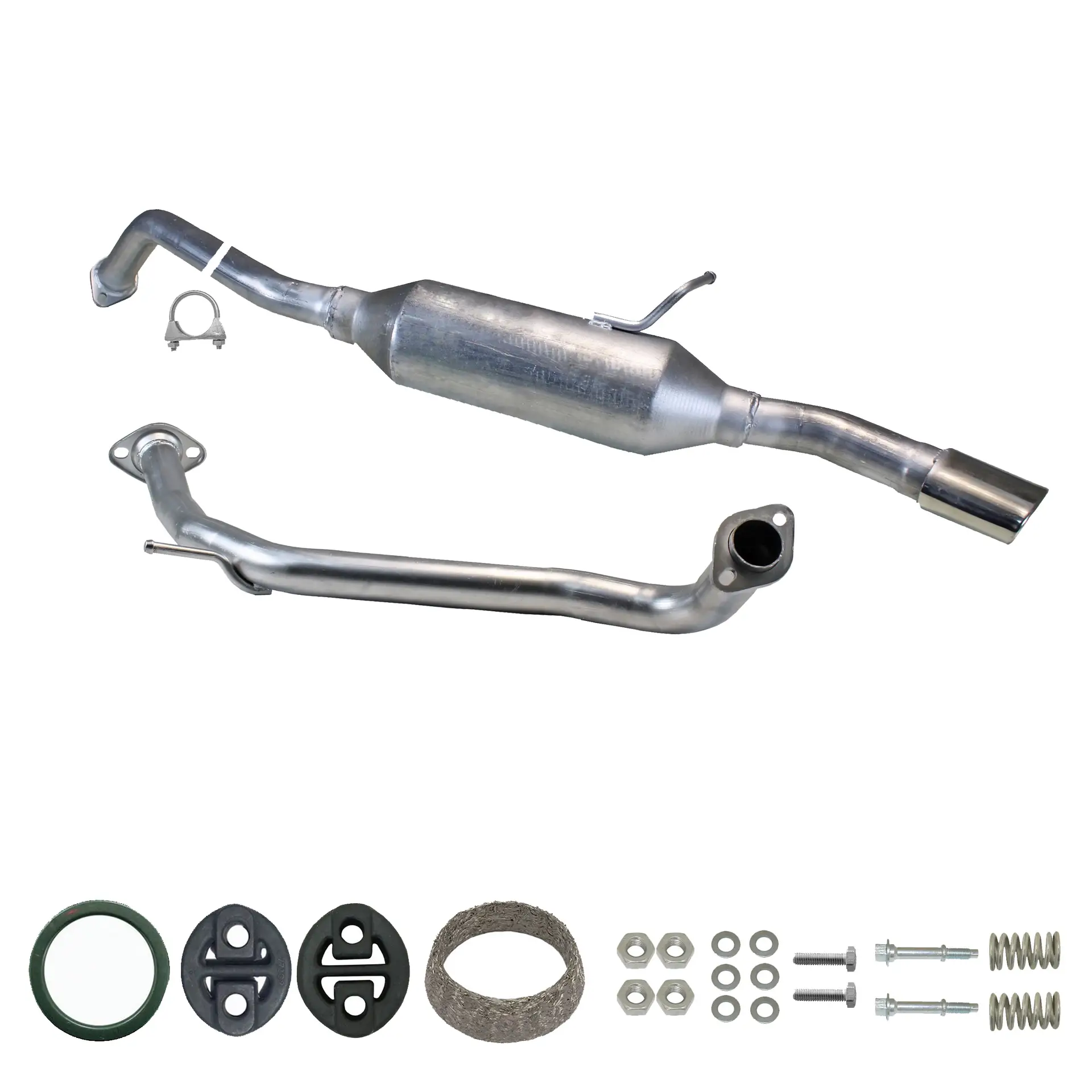 * Tłumiki posiadają system wygłuszający na bazie włókna szklanego dzięki temu nie zmienia się głośność układu wydechowego. * Produkt nie wymaga spawania !