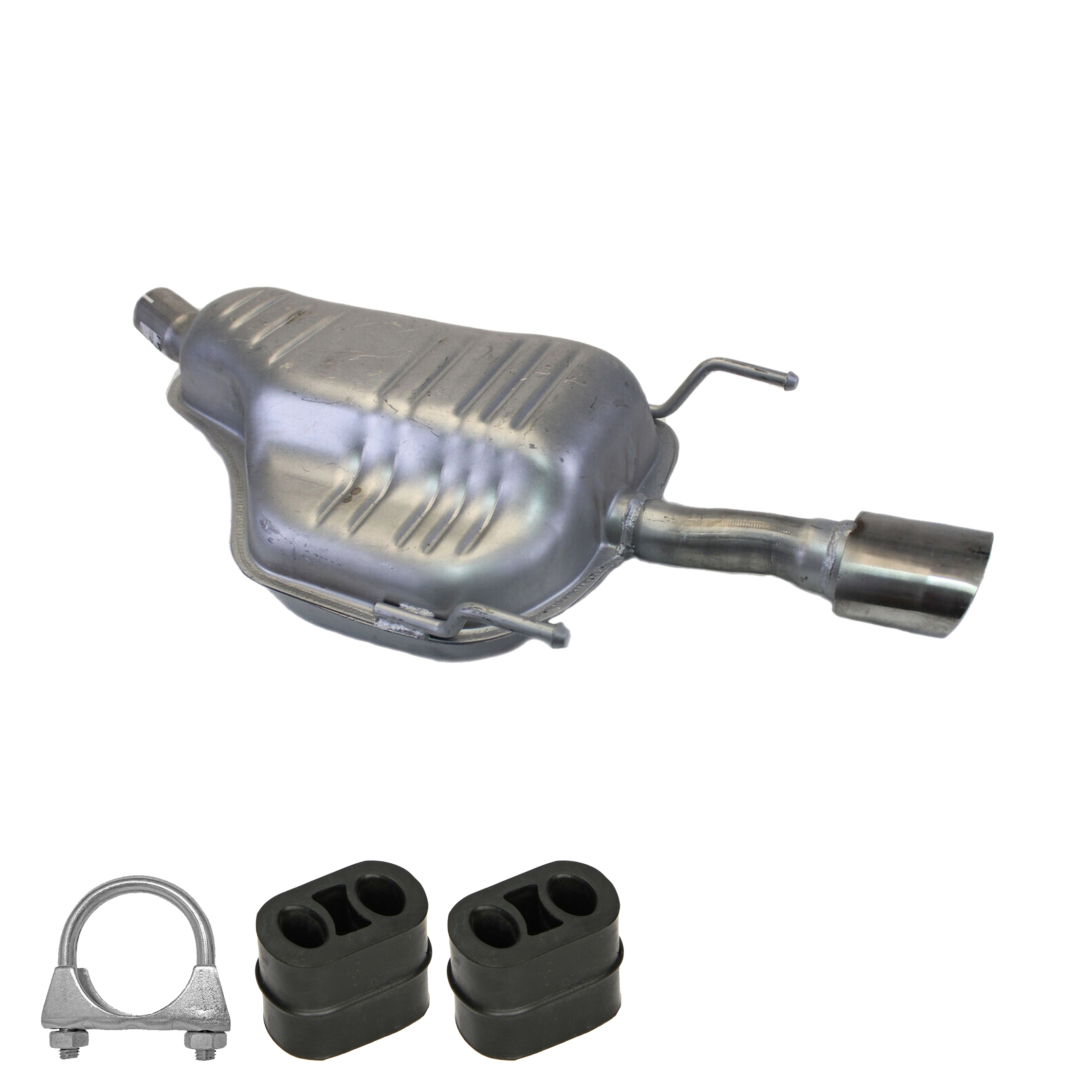 * Tłumiki posiadają system wygłuszający na bazie włókna szklanego dzięki temu nie zmienia się głośność układu wydechowego. * Produkt nie wymaga spawania !