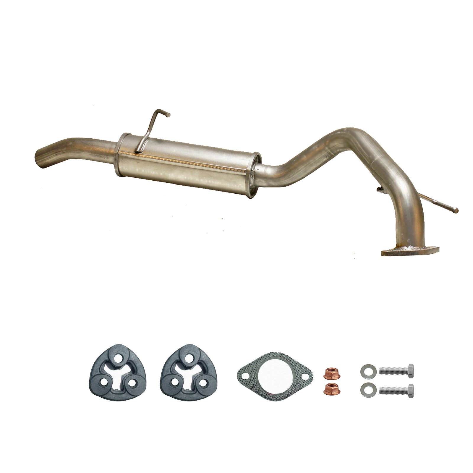 * Tłumiki posiadają system wygłuszający na bazie włókna szklanego dzięki temu nie zmienia się głośność układu wydechowego. * Produkt nie wymaga spawania !