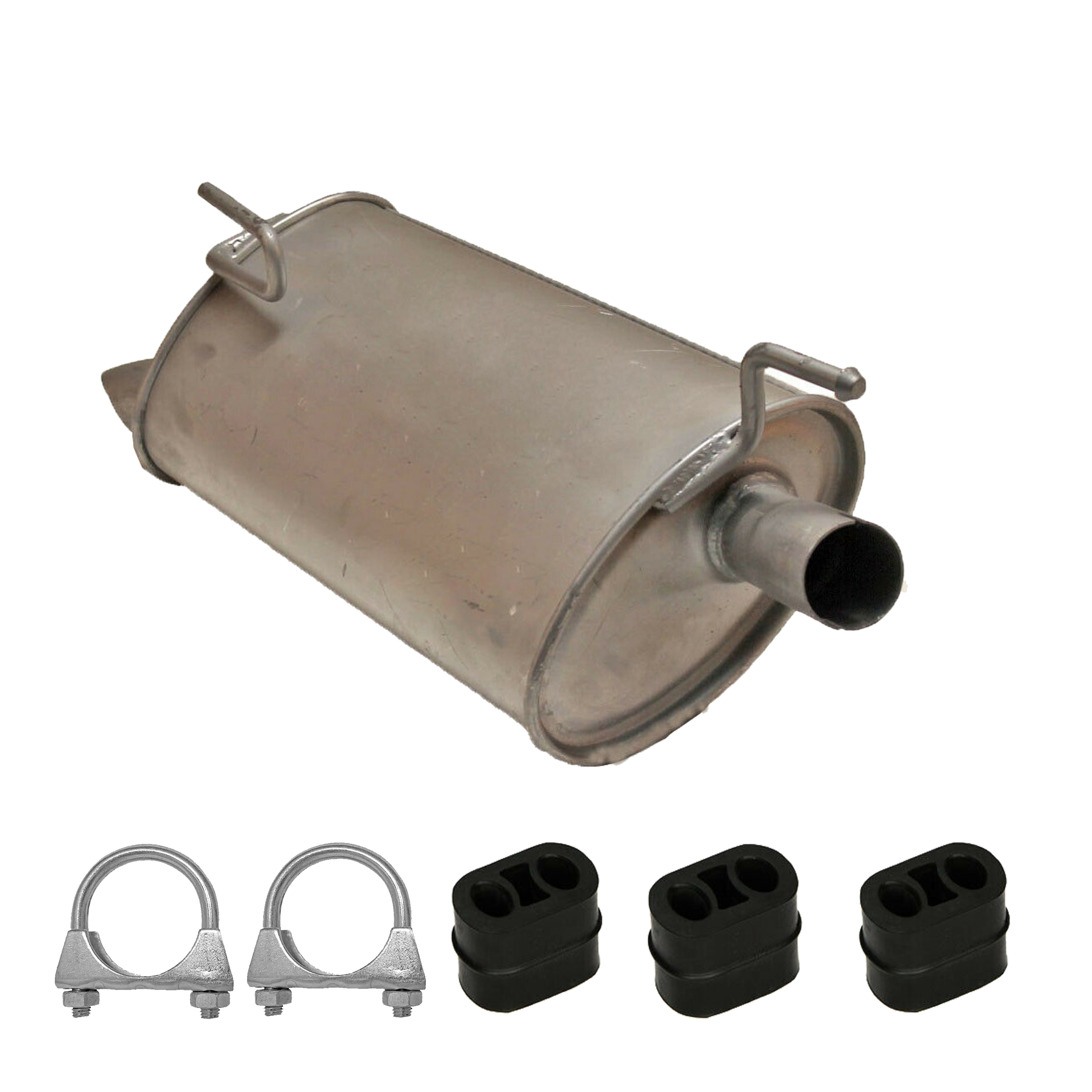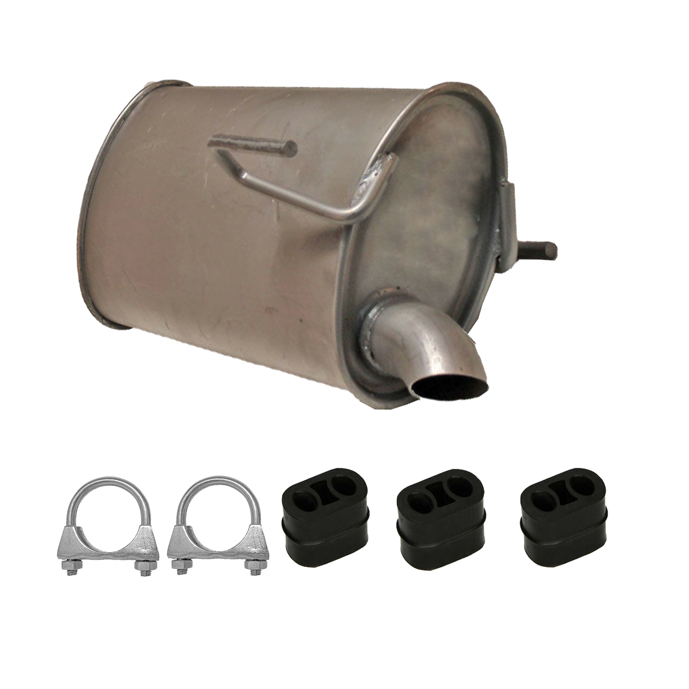 * Tłumiki posiadają system wygłuszający na bazie włókna szklanego dzięki temu nie zmienia się głośność układu wydechowego. * Produkt nie wymaga spawania !