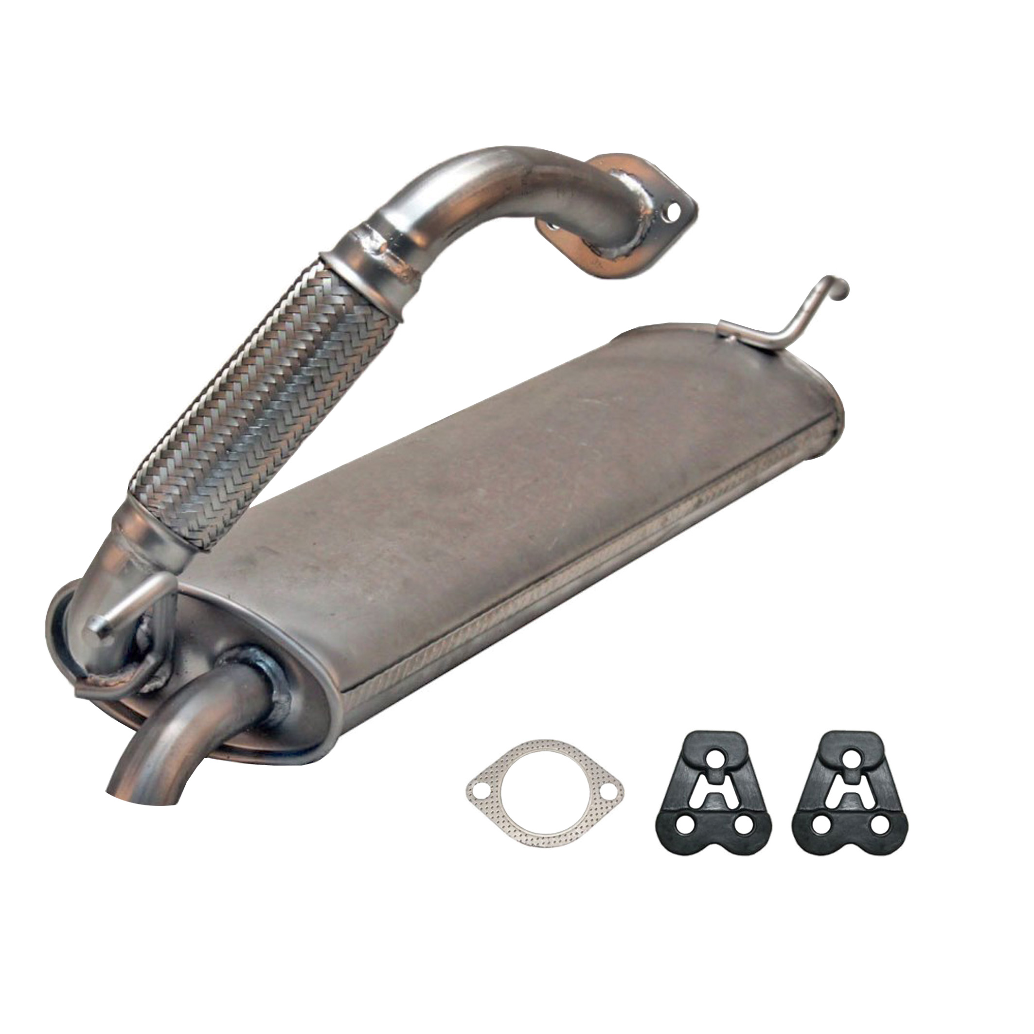 * Tłumiki posiadają system wygłuszający na bazie włókna szklanego dzięki temu nie zmienia się głośność układu wydechowego. * Produkt nie wymaga spawania !