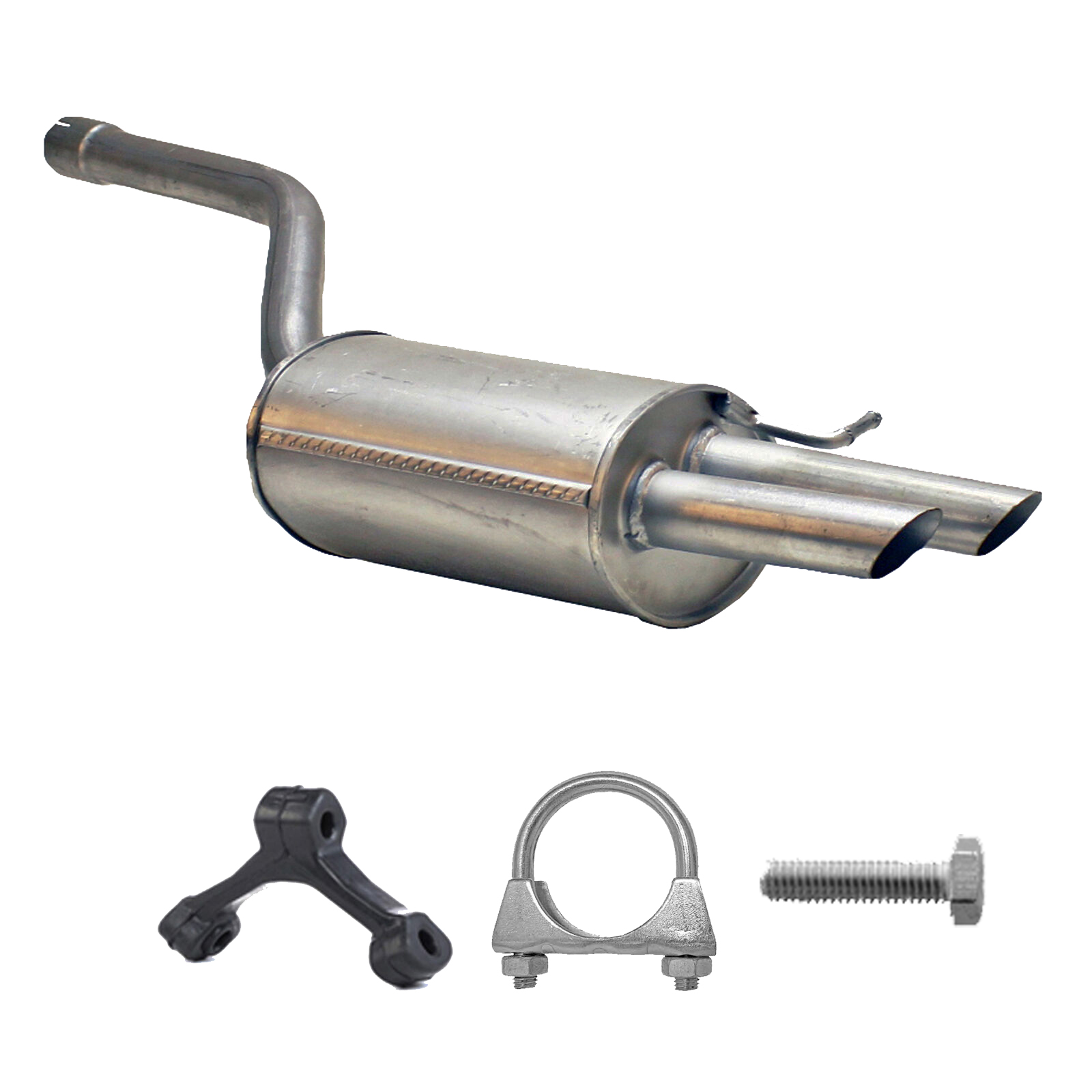 * Tłumiki posiadają system wygłuszający na bazie włókna szklanego dzięki temu nie zmienia się głośność układu wydechowego. * Produkt nie wymaga spawania !