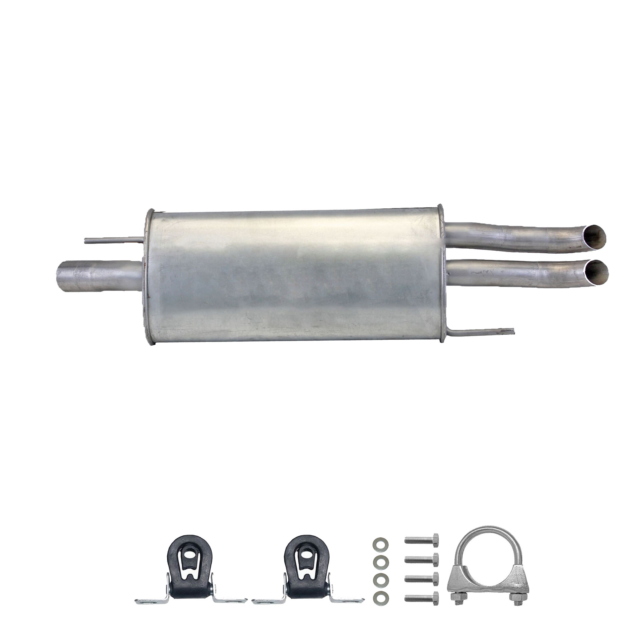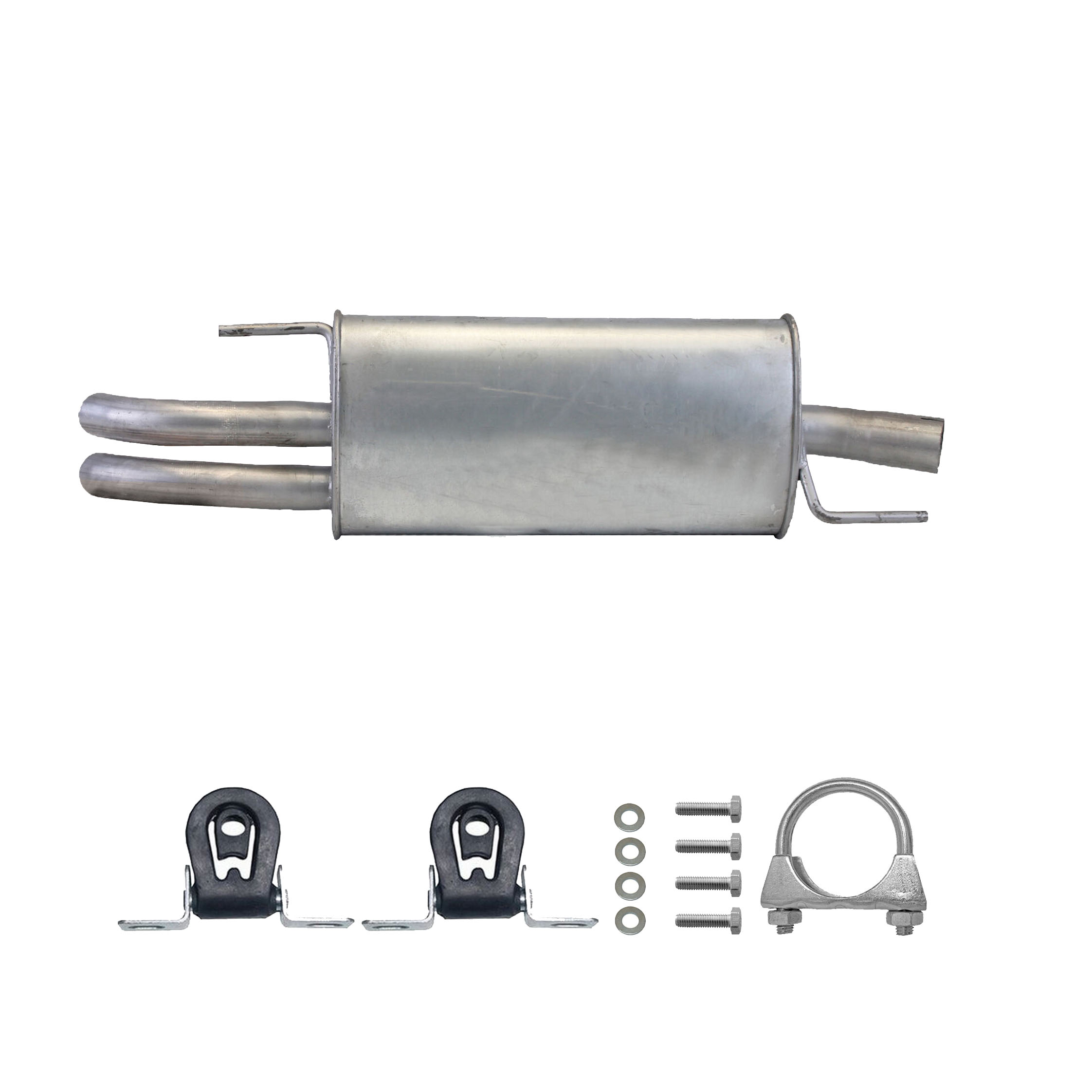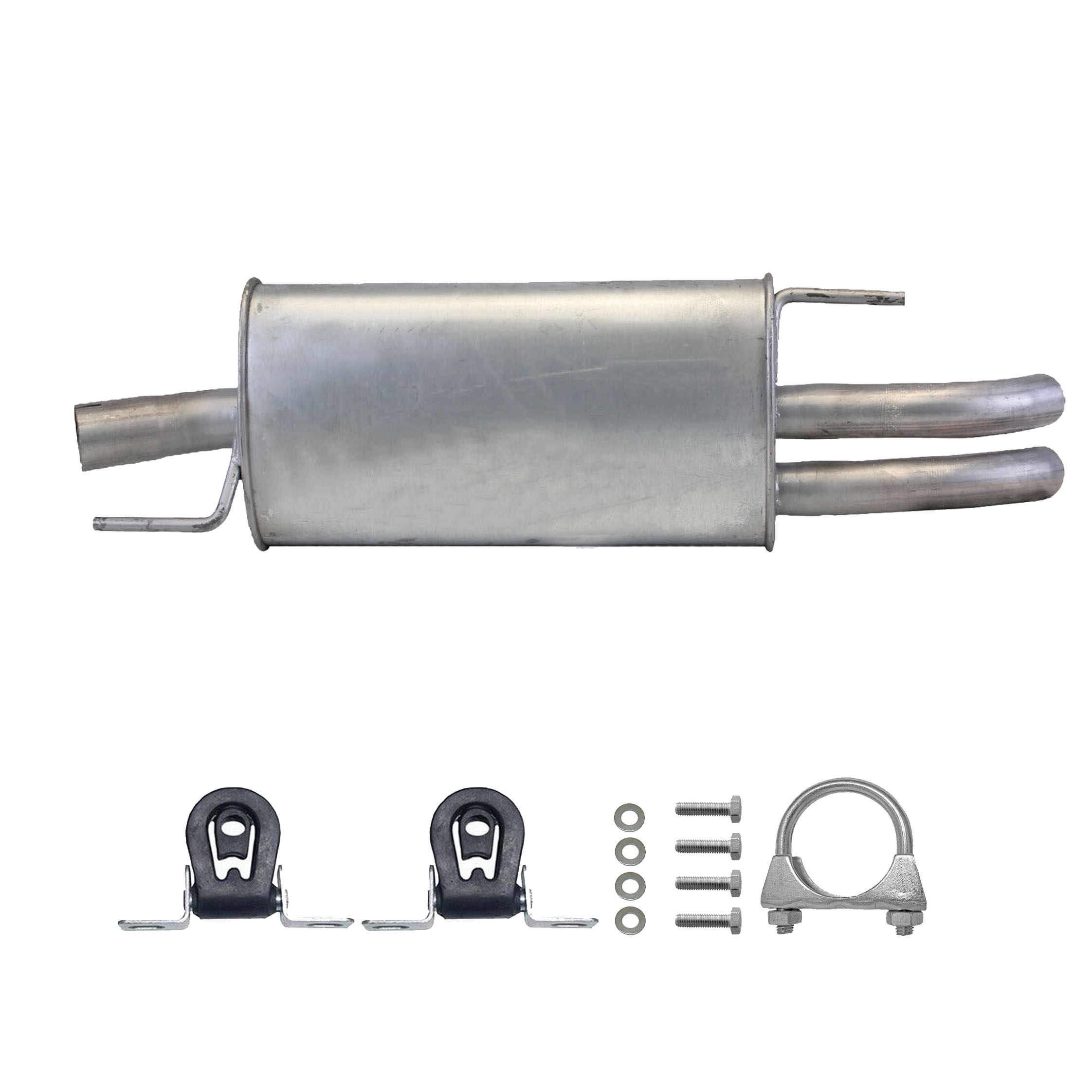 * Tłumiki posiadają system wygłuszający na bazie włókna szklanego dzięki temu nie zmienia się głośność układu wydechowego. * Produkt nie wymaga spawania !