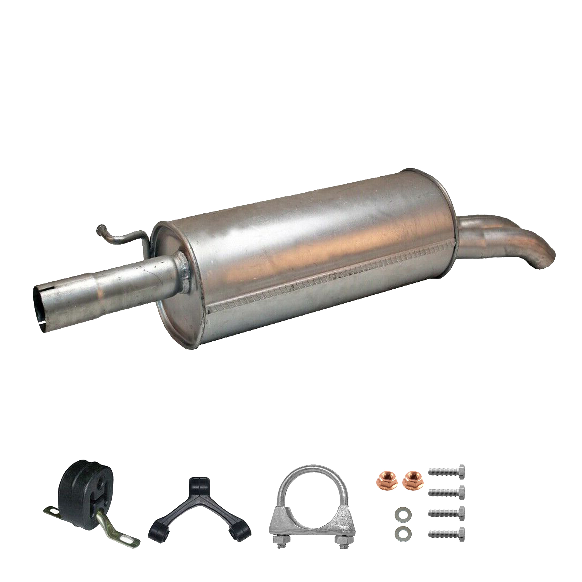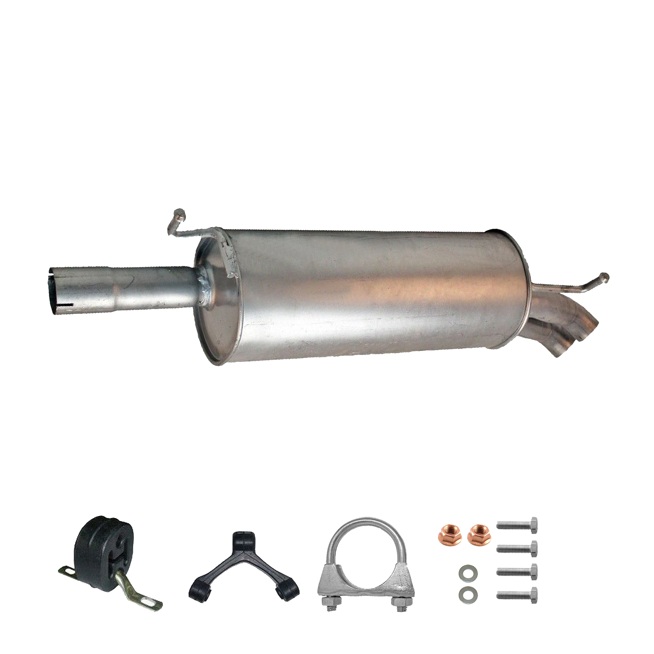 * Tłumiki posiadają system wygłuszający na bazie włókna szklanego dzięki temu nie zmienia się głośność układu wydechowego. * Produkt nie wymaga spawania !