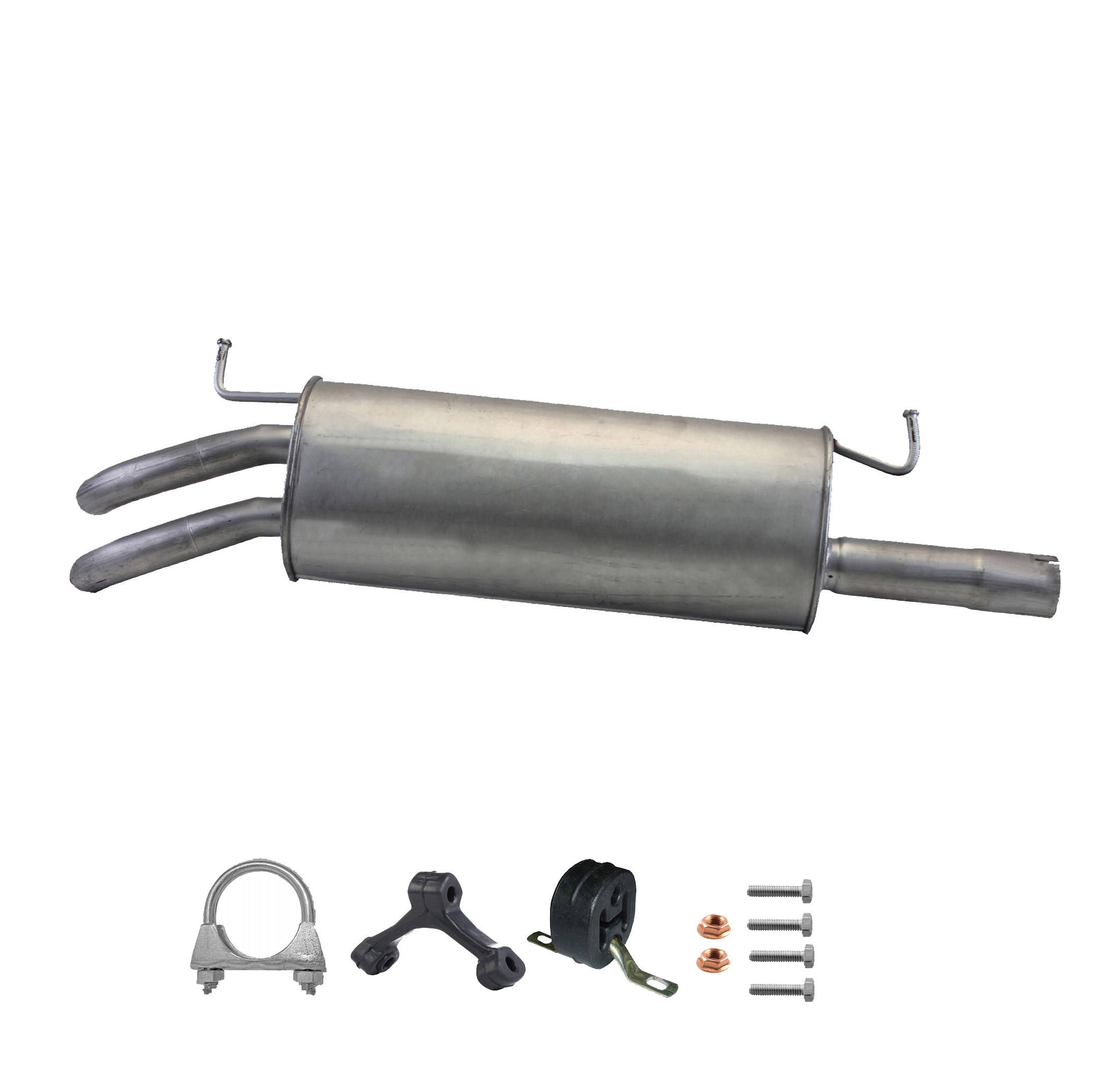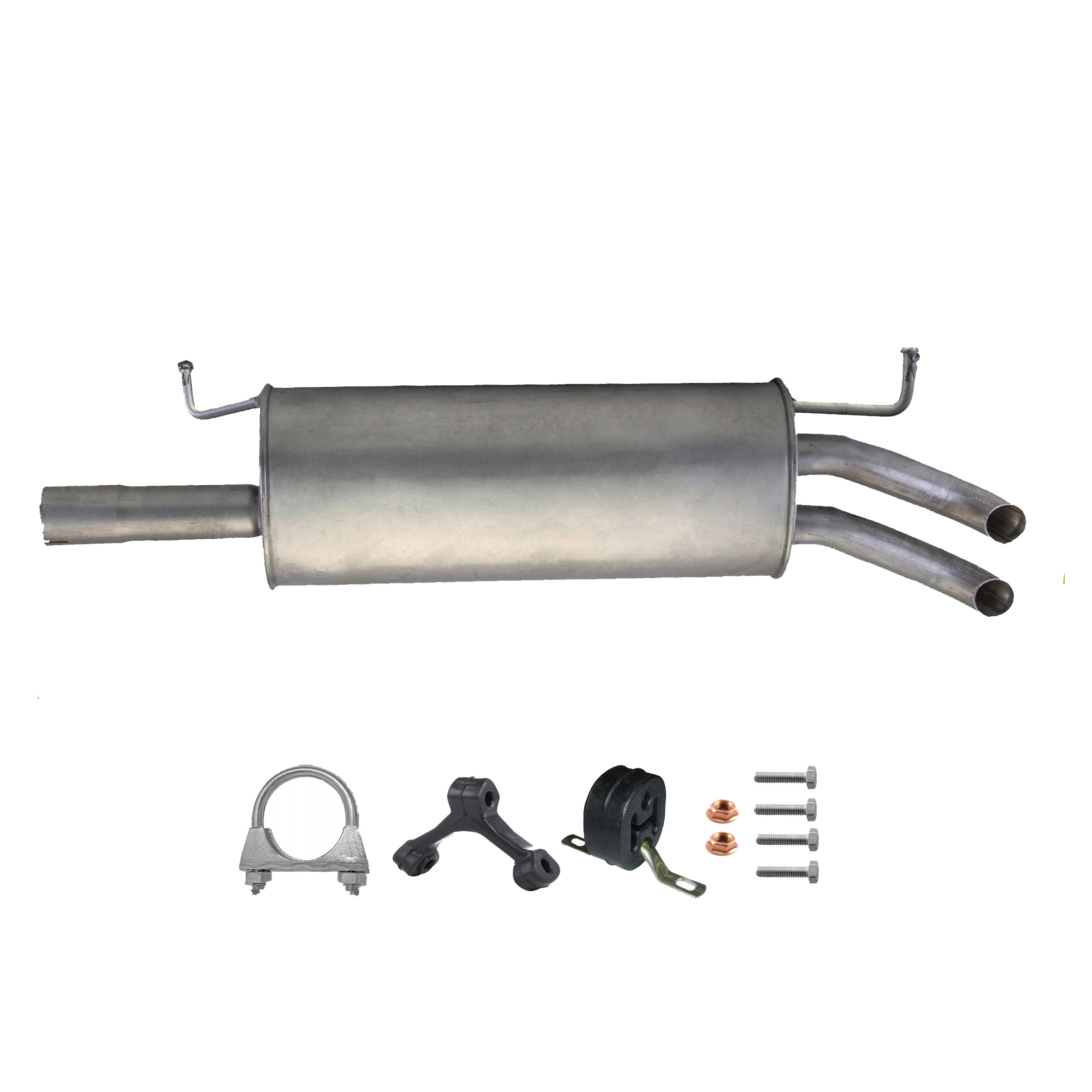 * Tłumiki posiadają system wygłuszający na bazie włókna szklanego dzięki temu nie zmienia się głośność układu wydechowego. * Produkt nie wymaga spawania !