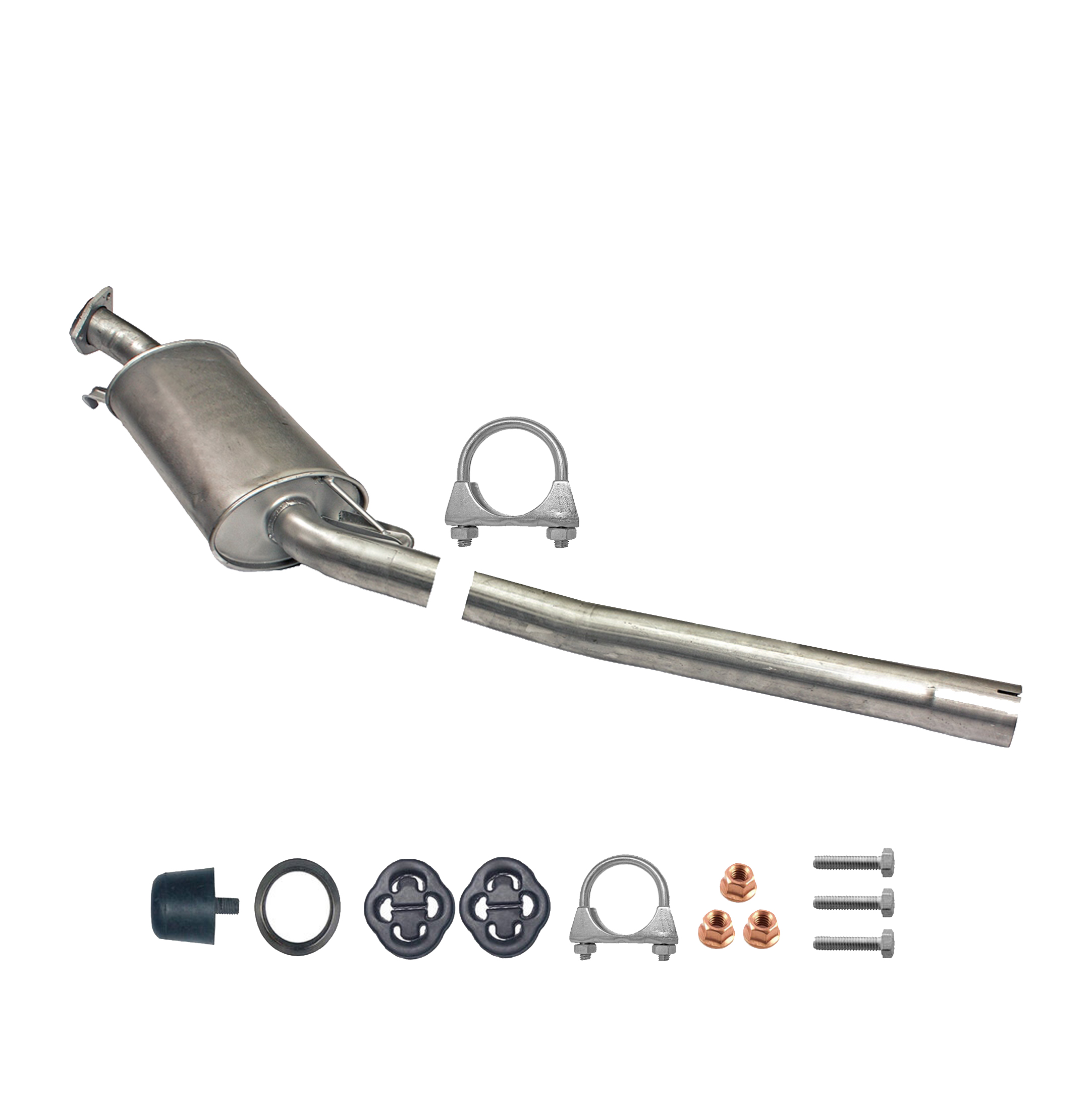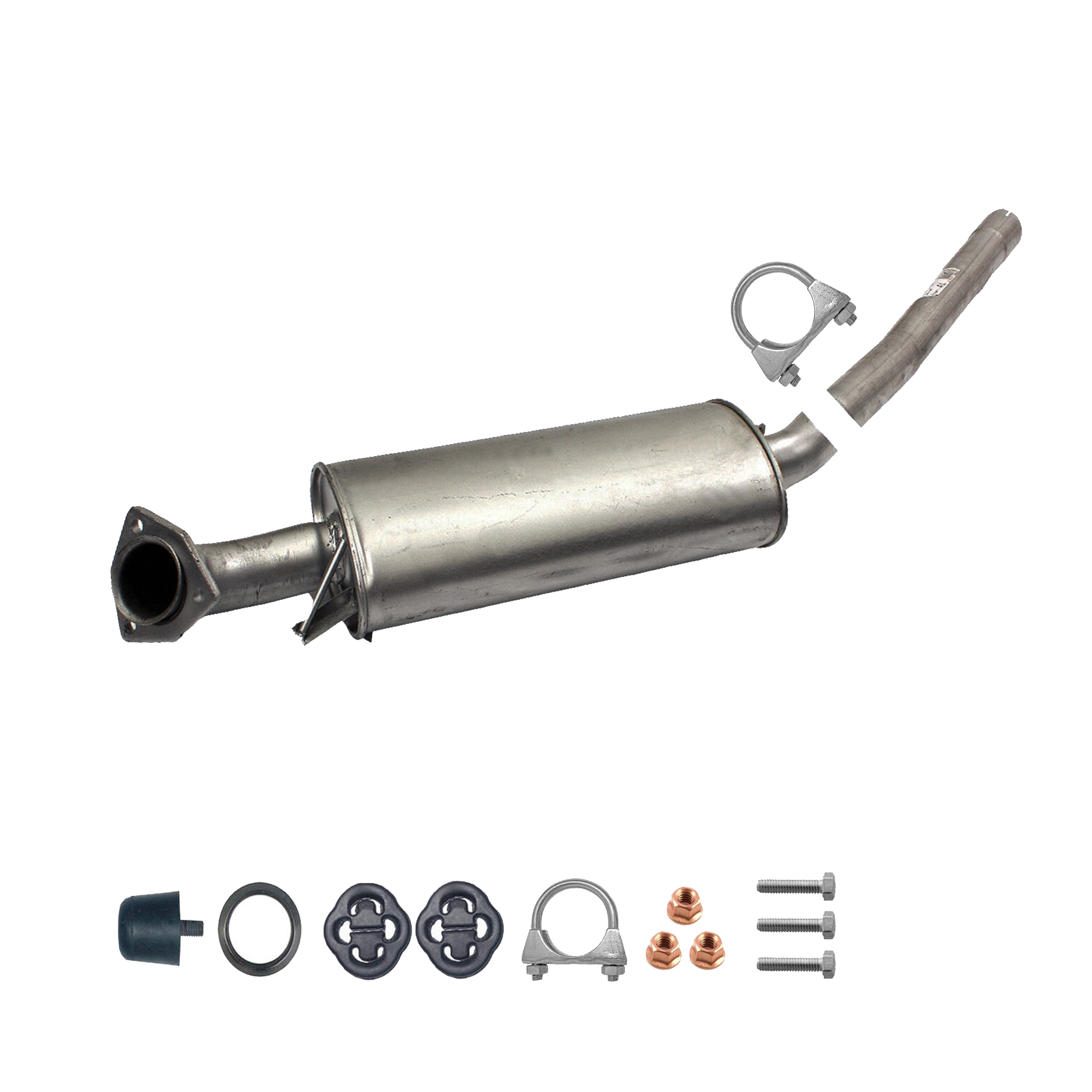 * Tłumiki posiadają system wygłuszający na bazie włókna szklanego dzięki temu nie zmienia się głośność układu wydechowego. * Produkt nie wymaga spawania !