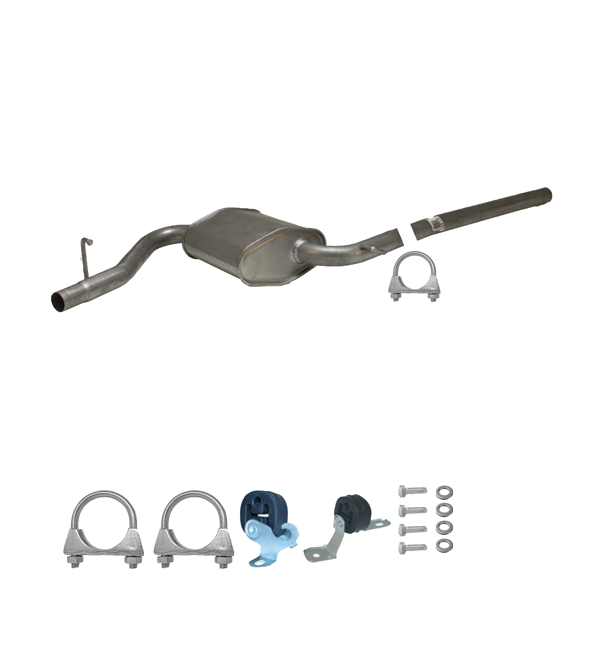 * Tłumiki posiadają system wygłuszający na bazie włókna szklanego dzięki temu nie zmienia się głośność układu wydechowego. * Produkt nie wymaga spawania !