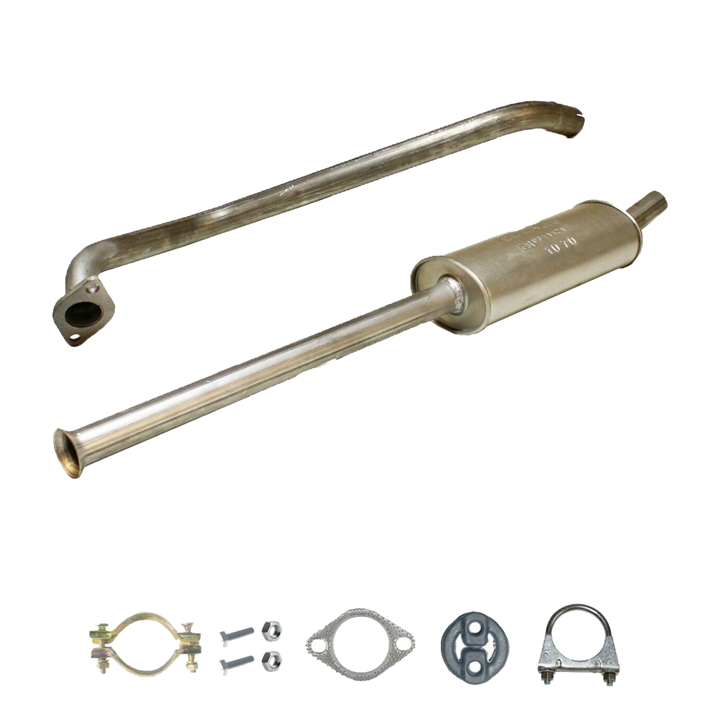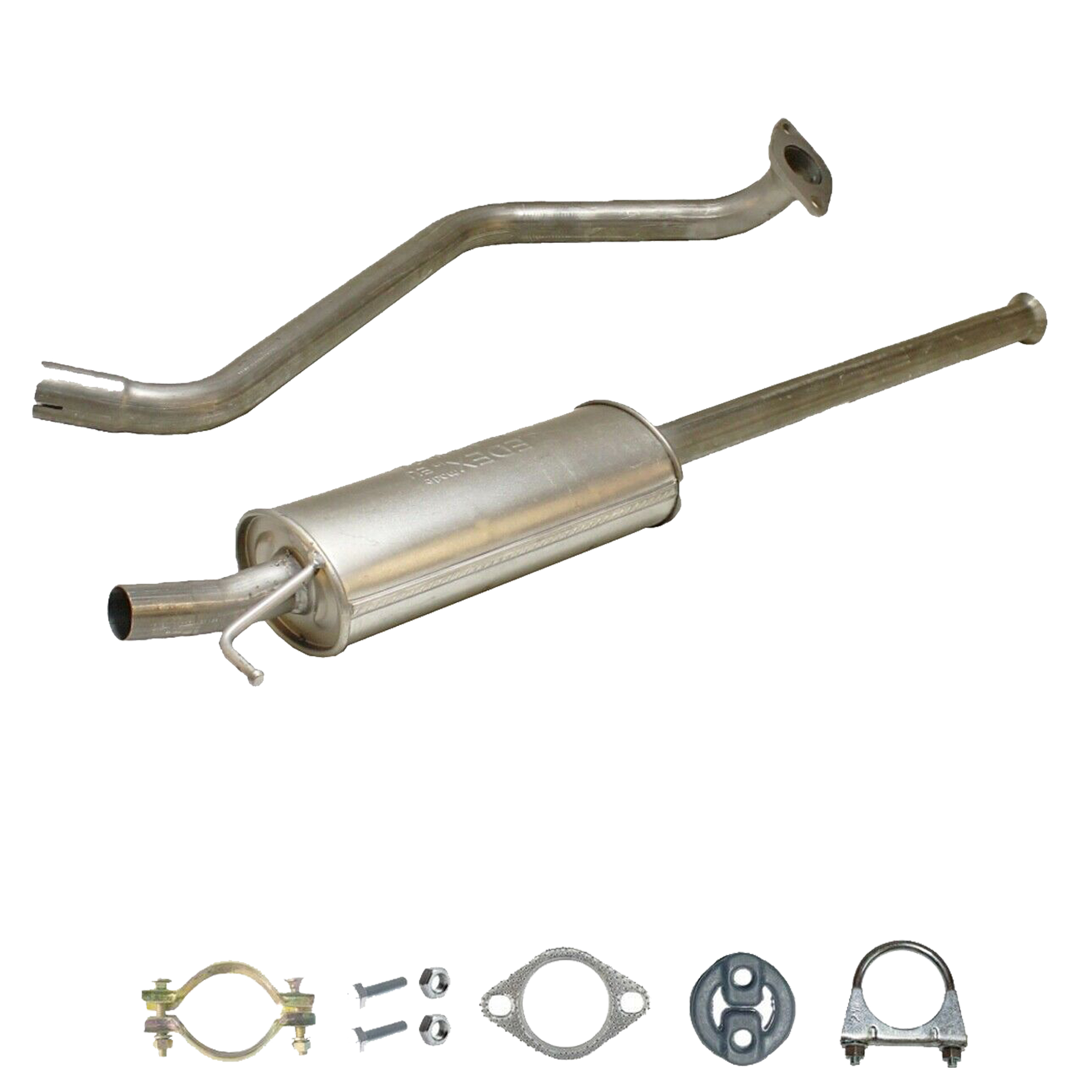 * Tłumiki posiadają system wygłuszający na bazie włókna szklanego dzięki temu nie zmienia się głośność układu wydechowego. * Produkt nie wymaga spawania !