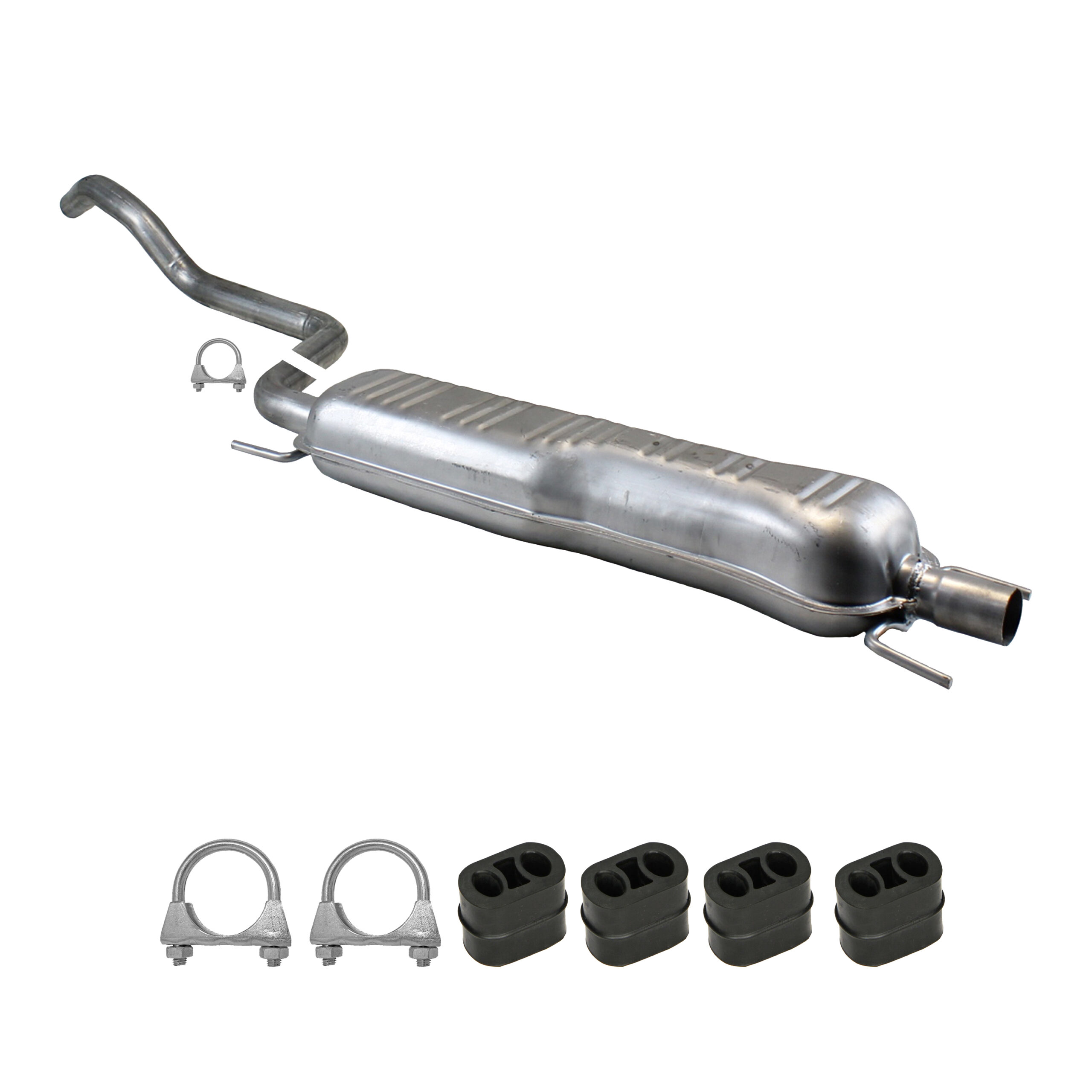 * Tłumiki posiadają system wygłuszający na bazie włókna szklanego dzięki temu nie zmienia się głośność układu wydechowego. * Produkt nie wymaga spawania !