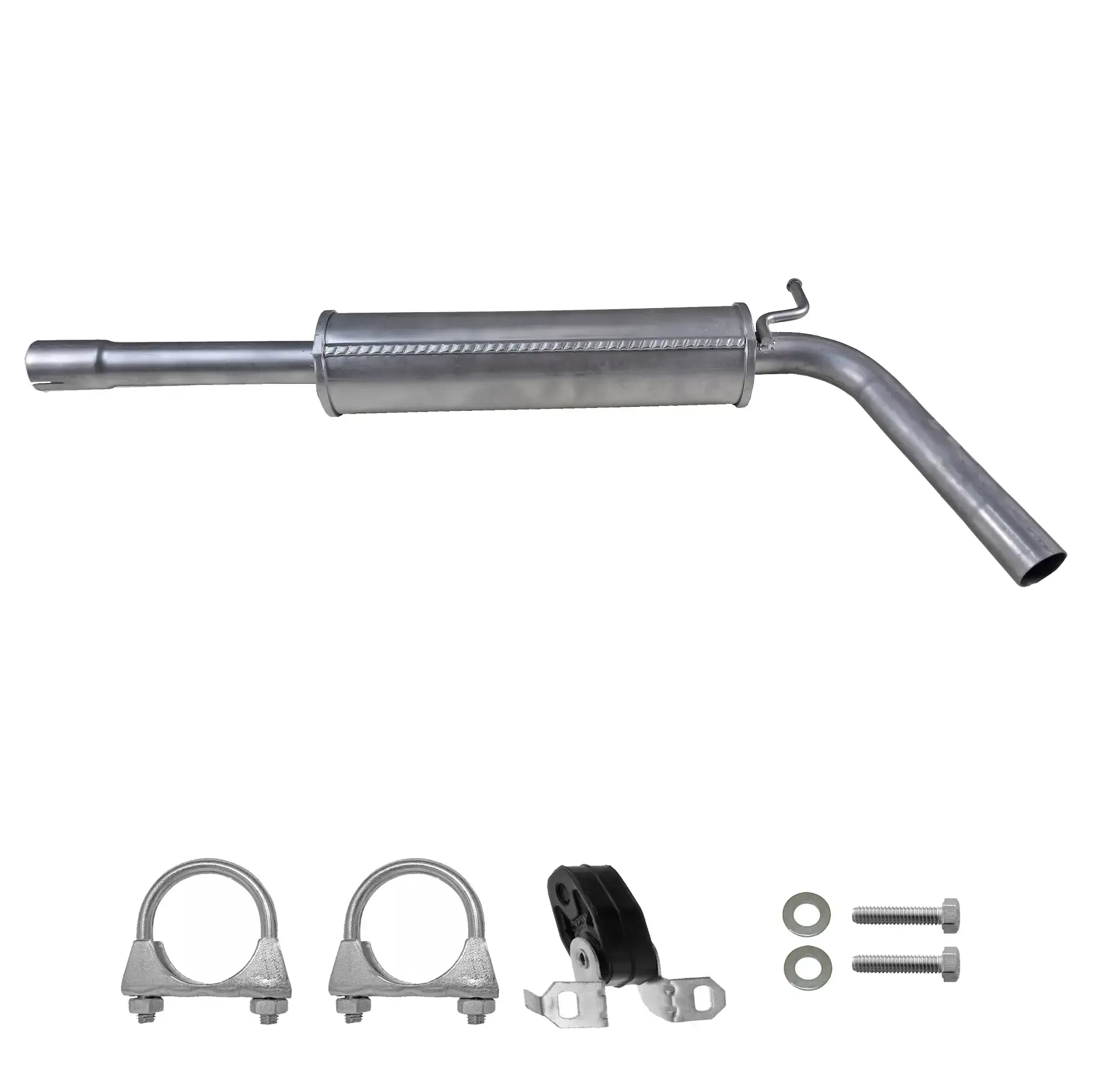 * Tłumiki posiadają system wygłuszający na bazie włókna szklanego dzięki temu nie zmienia się głośność układu wydechowego. * Produkt nie wymaga spawania !