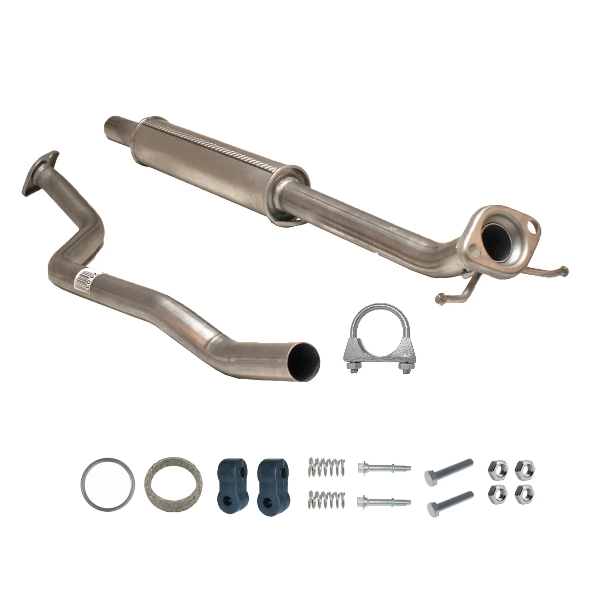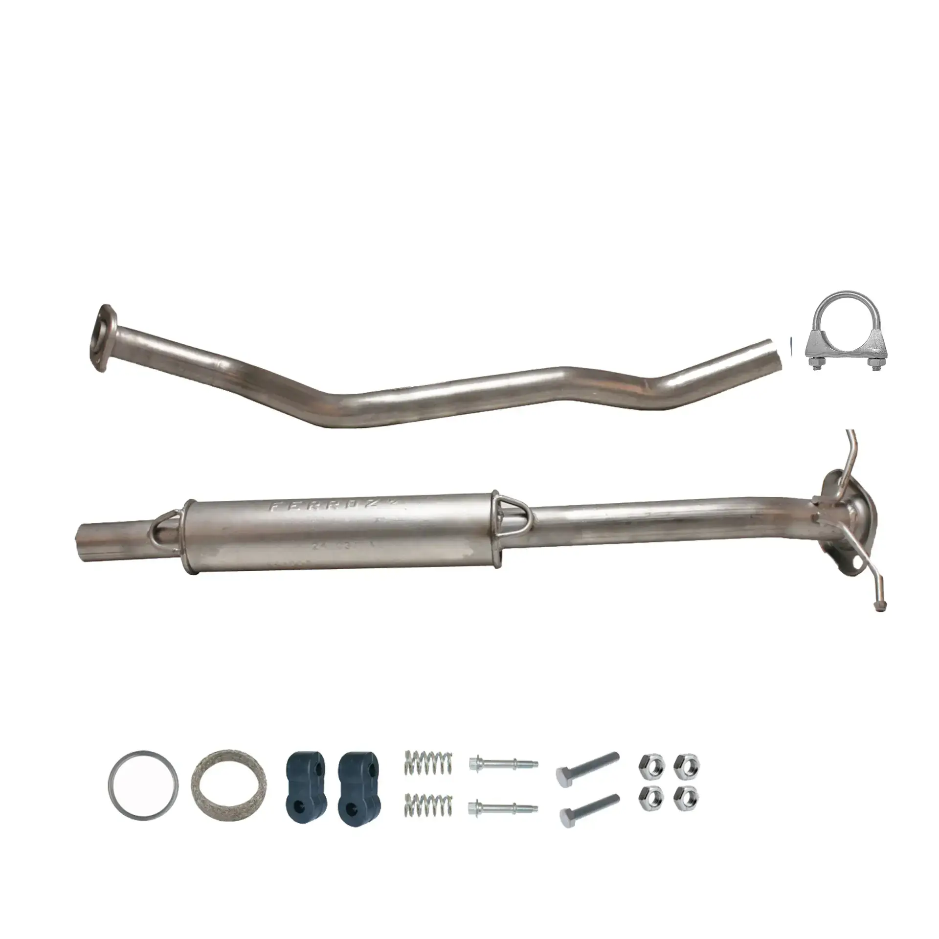 * Tłumiki posiadają system wygłuszający na bazie włókna szklanego dzięki temu nie zmienia się głośność układu wydechowego. * Produkt nie wymaga spawania !