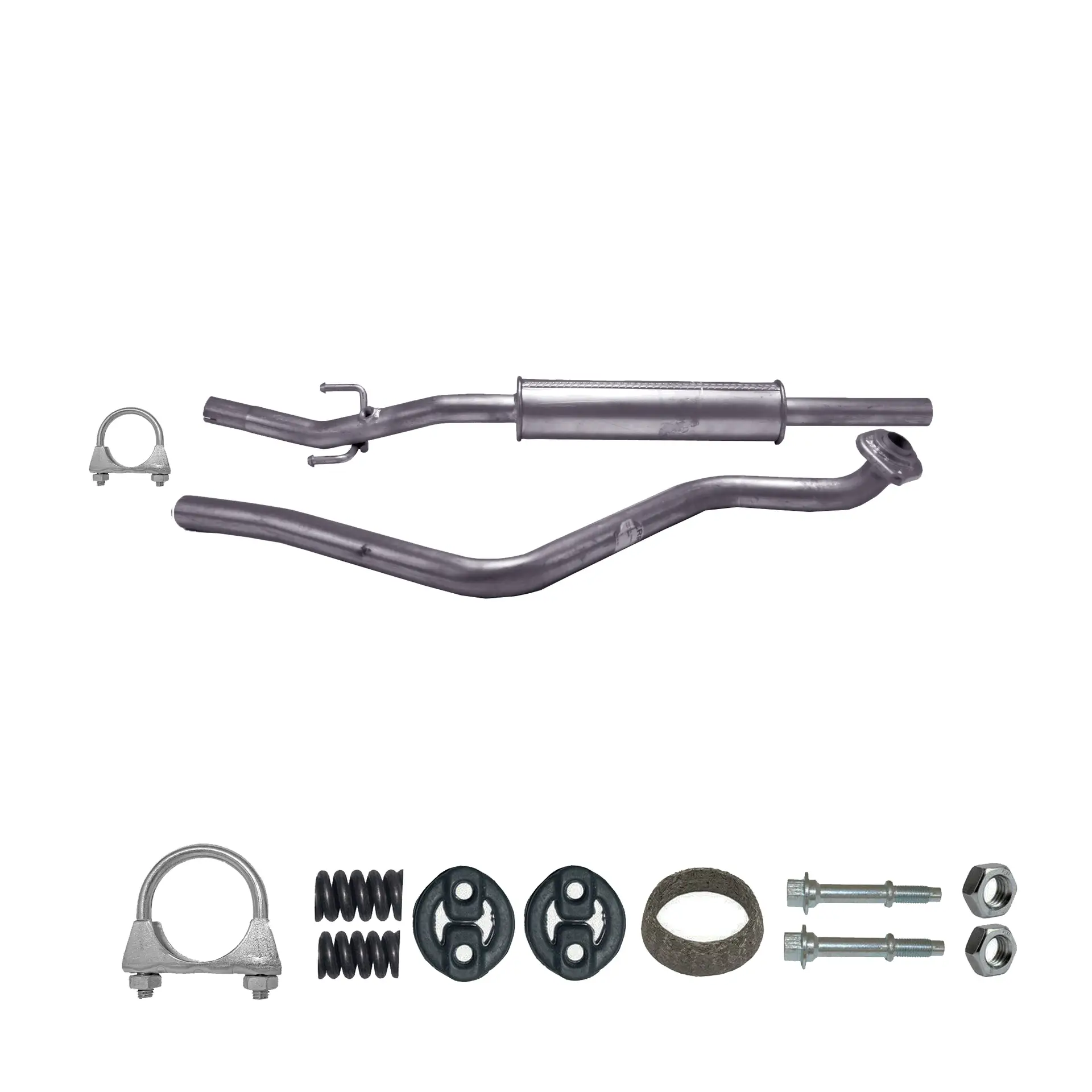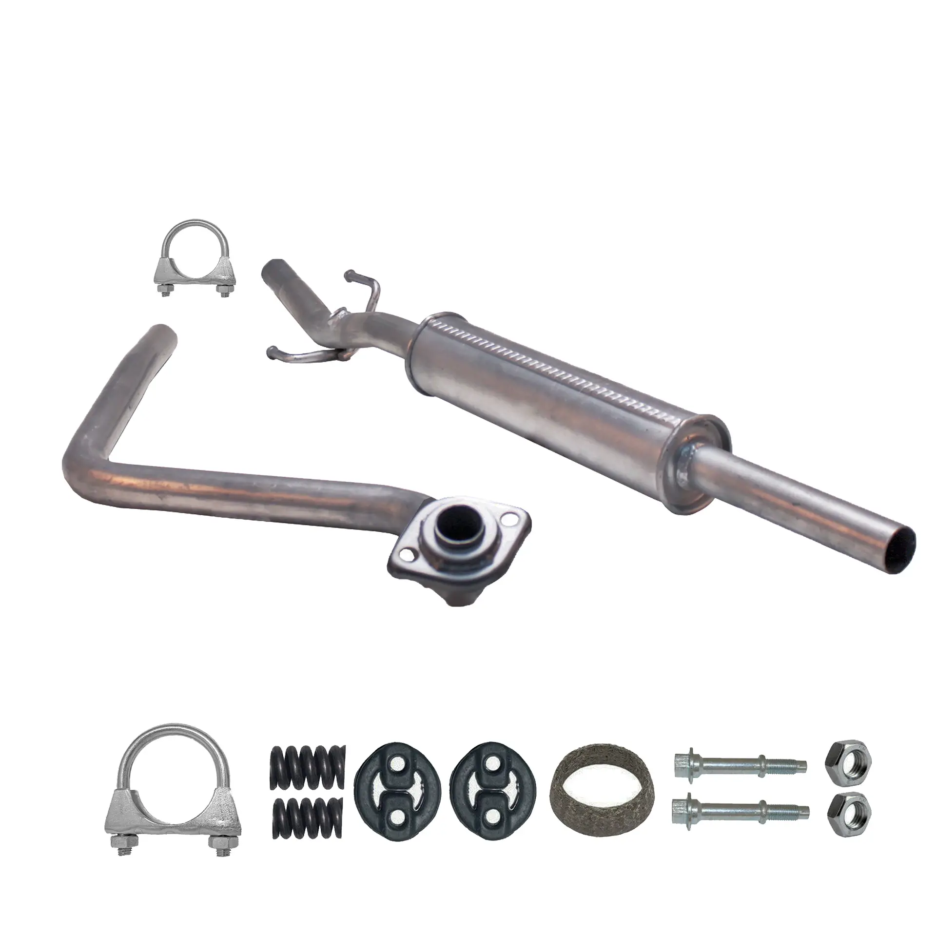 * Tłumiki posiadają system wygłuszający na bazie włókna szklanego dzięki temu nie zmienia się głośność układu wydechowego. * Produkt nie wymaga spawania !