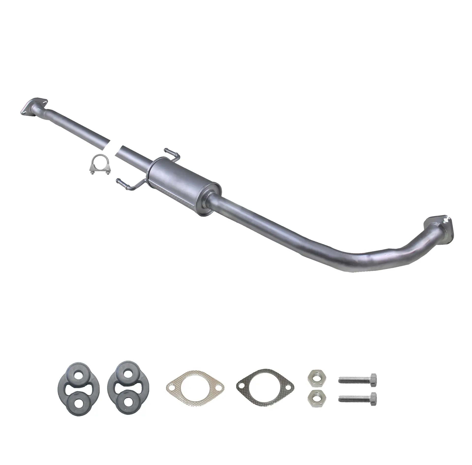 * Tłumiki posiadają system wygłuszający na bazie włókna szklanego dzięki temu nie zmienia się głośność układu wydechowego. * Produkt nie wymaga spawania !