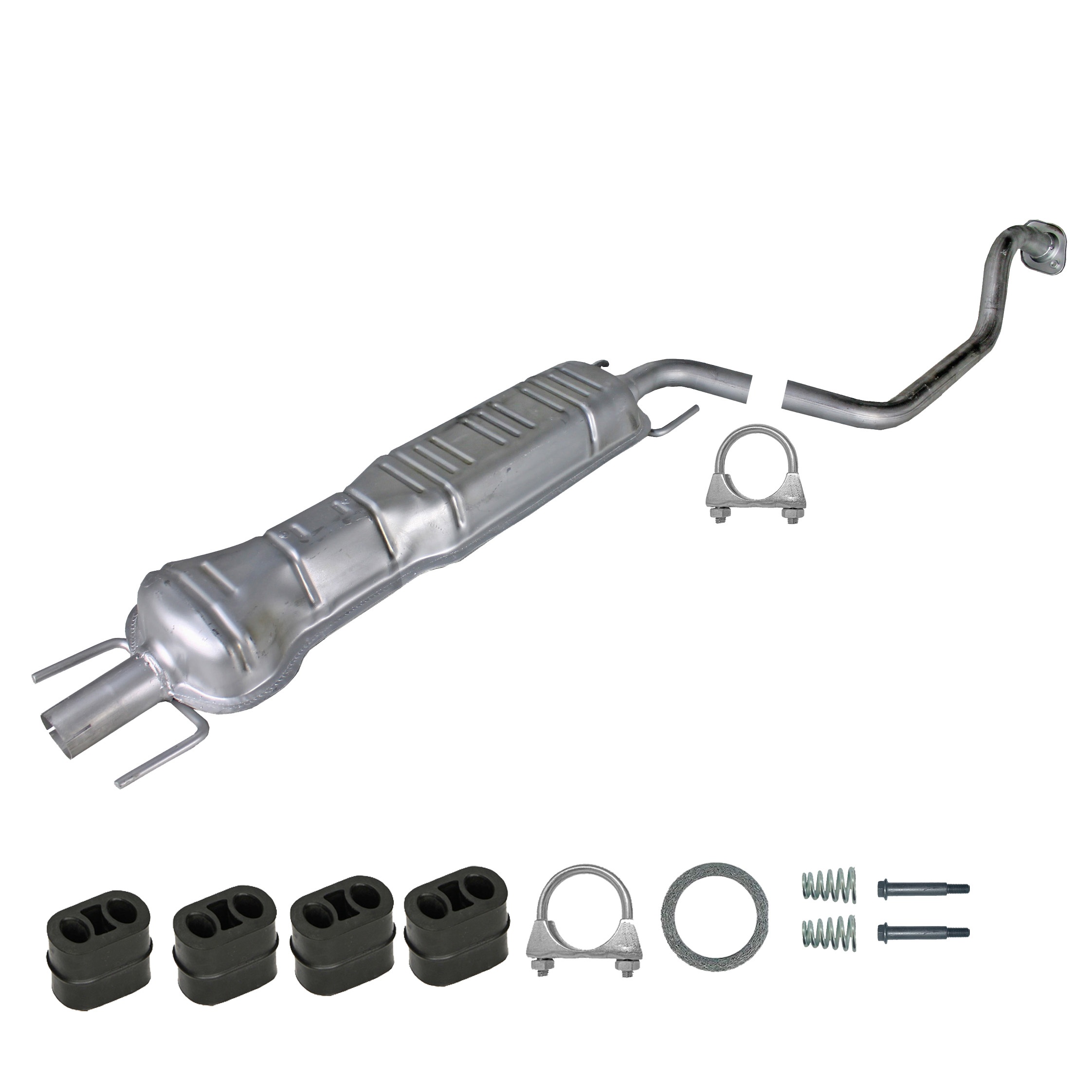 * Tłumiki posiadają system wygłuszający na bazie włókna szklanego dzięki temu nie zmienia się głośność układu wydechowego. * Produkt nie wymaga spawania !