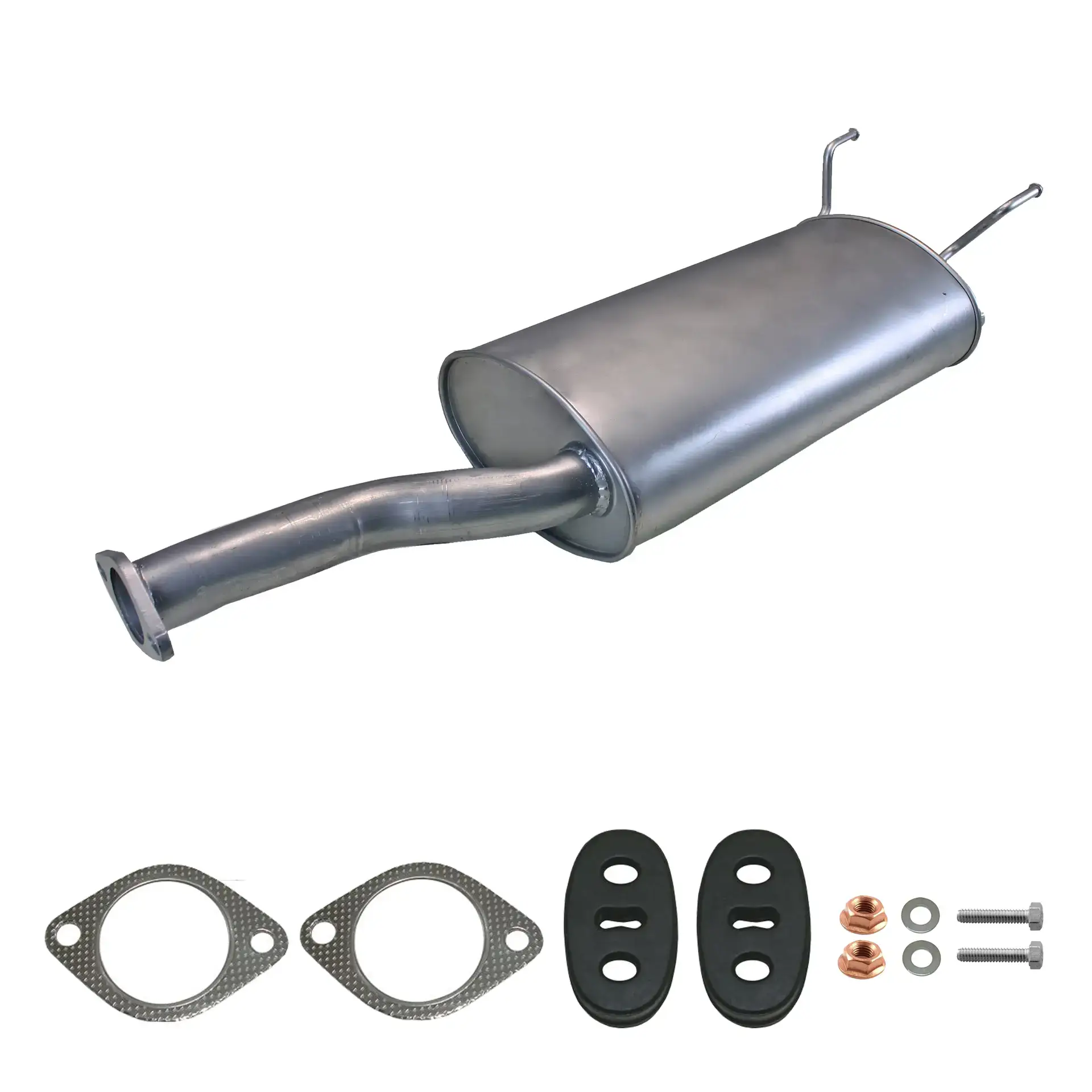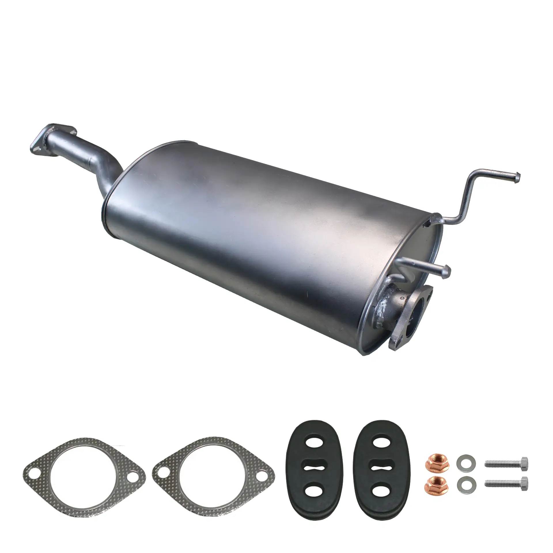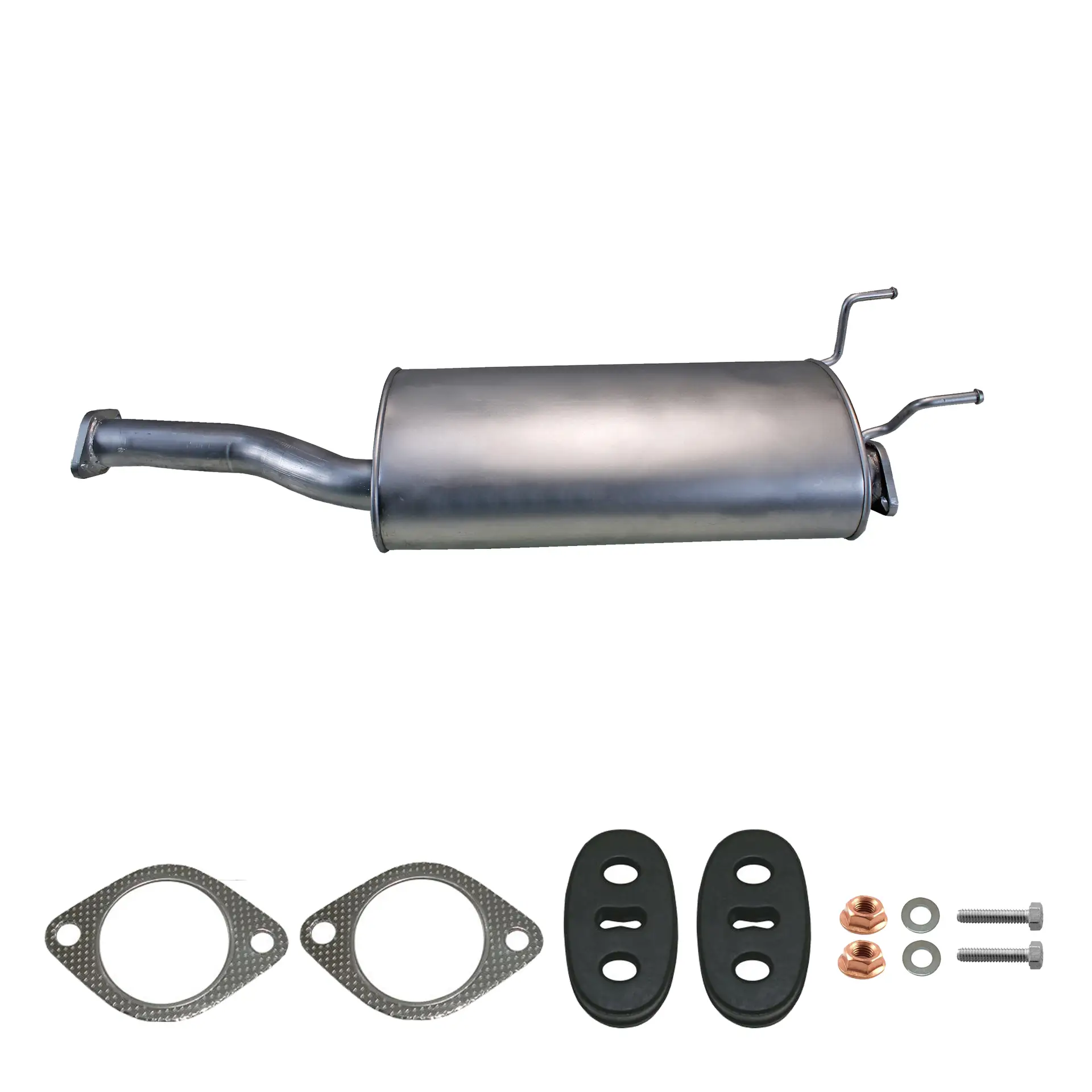 * Tłumiki posiadają system wygłuszający na bazie włókna szklanego dzięki temu nie zmienia się głośność układu wydechowego. * Produkt nie wymaga spawania !