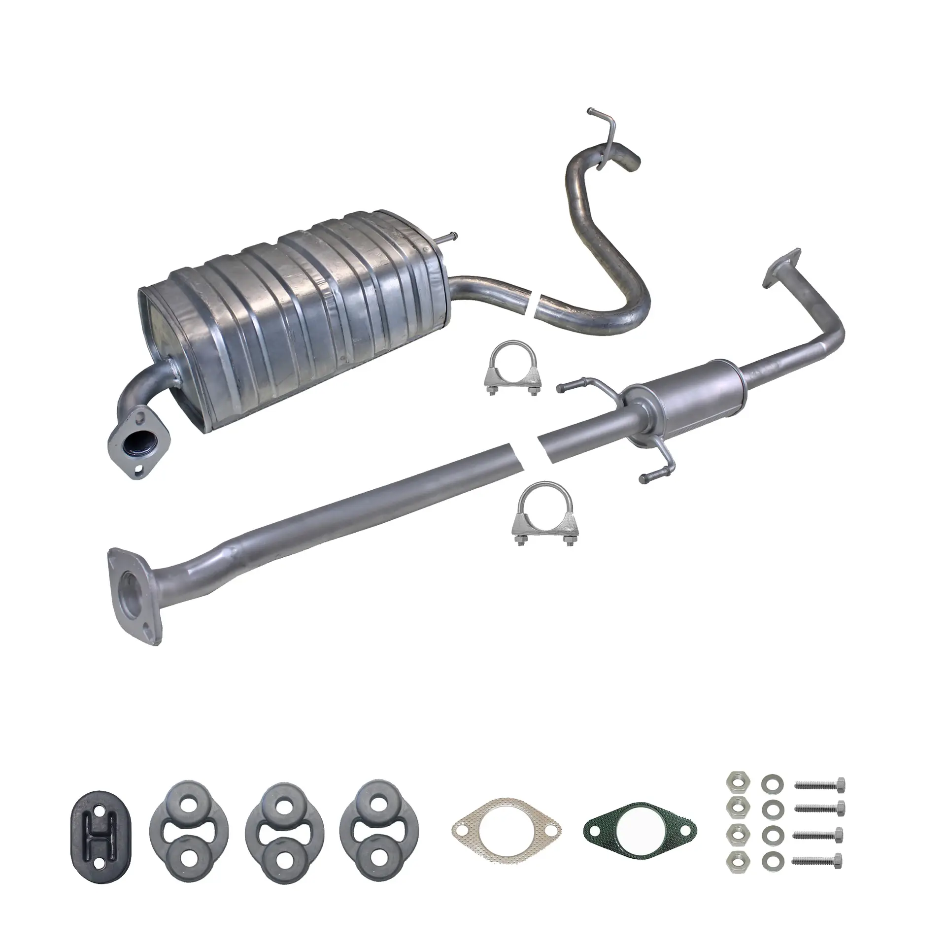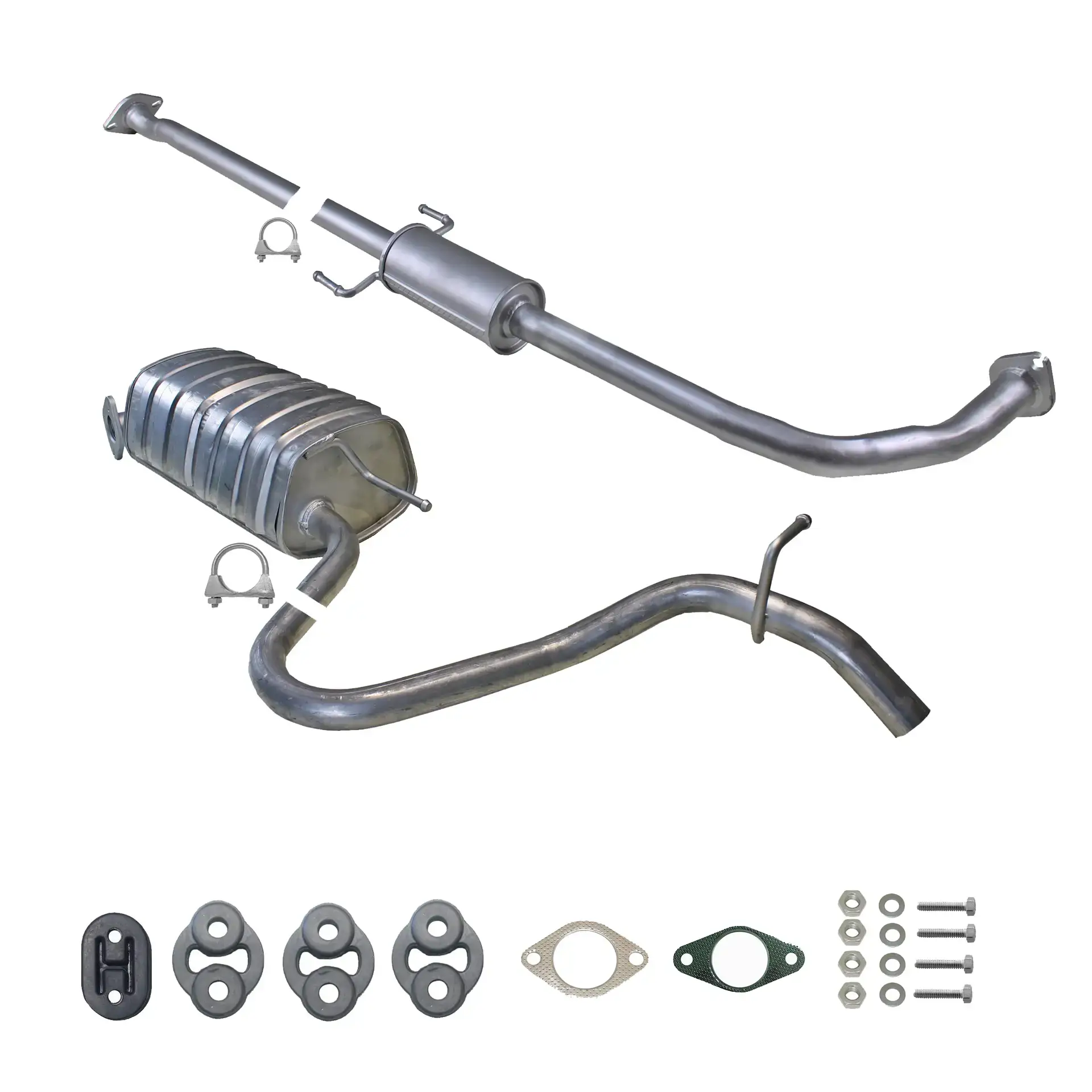 * Tłumiki posiadają system wygłuszający na bazie włókna szklanego dzięki temu nie zmienia się głośność układu wydechowego. * Produkt nie wymaga spawania !