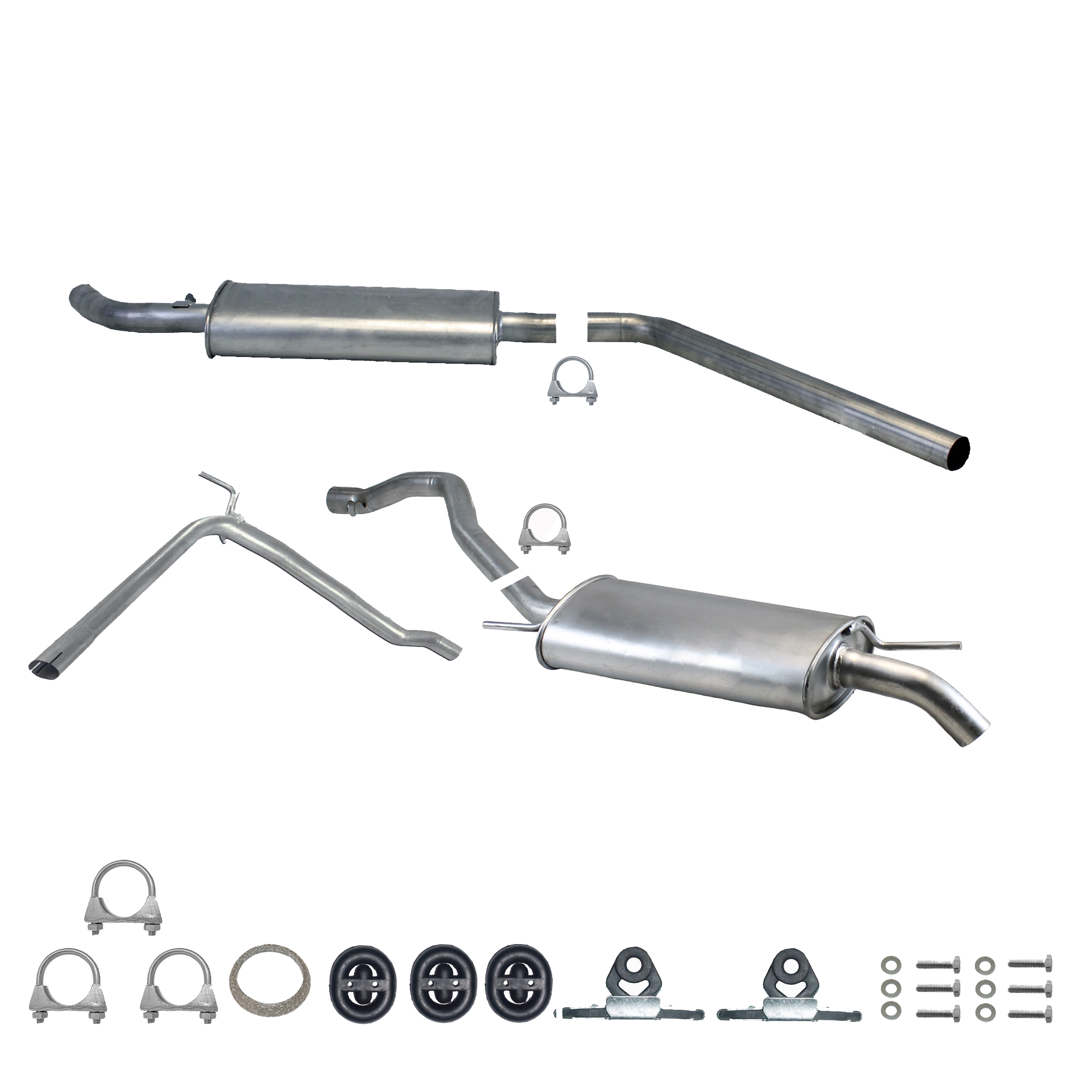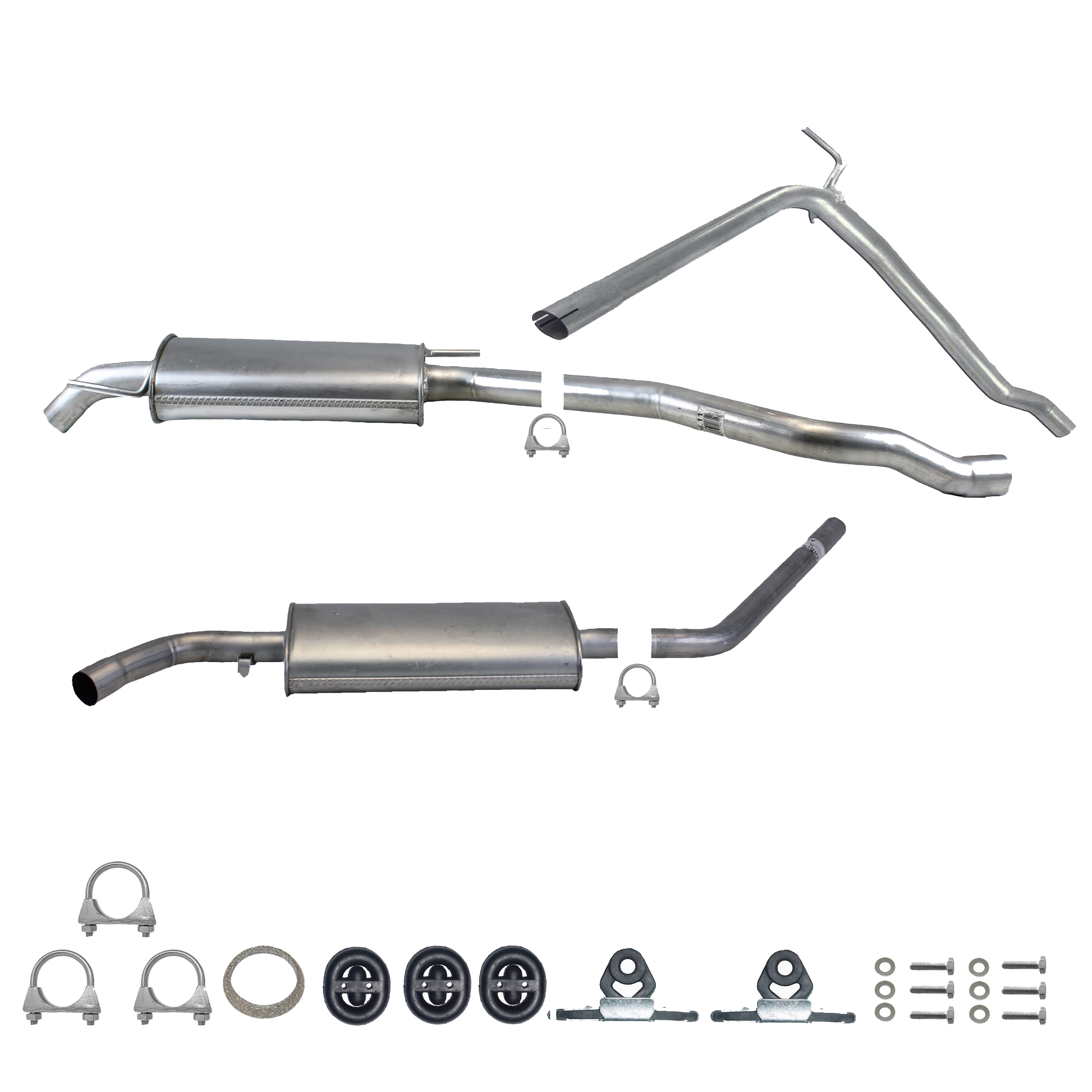 * Tłumiki posiadają system wygłuszający na bazie włókna szklanego dzięki temu nie zmienia się głośność układu wydechowego. * Produkt nie wymaga spawania !