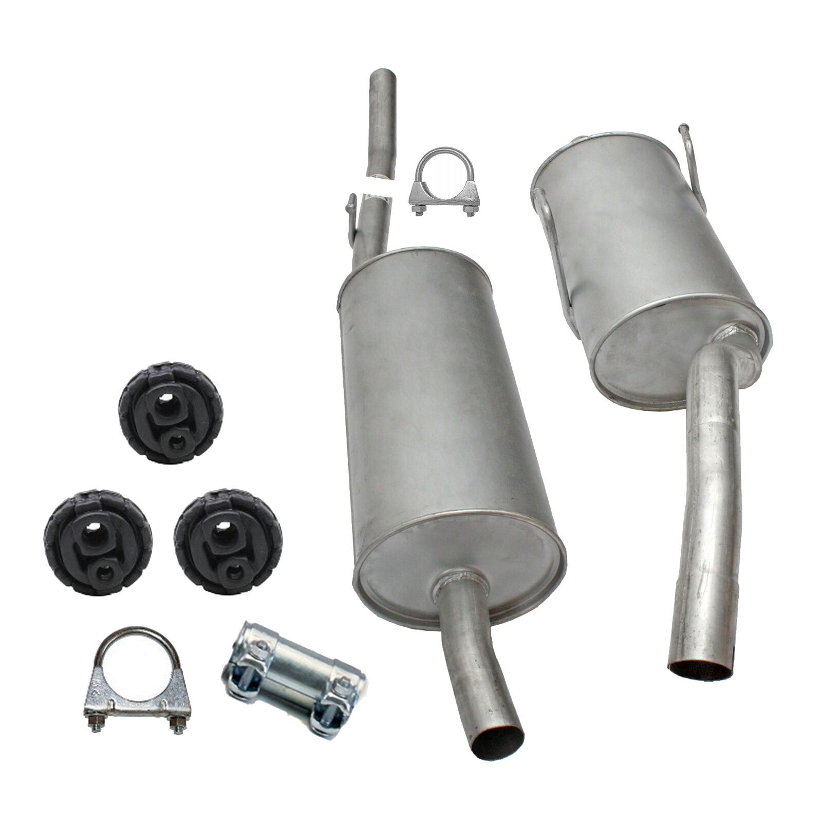 * Tłumiki posiadają system wygłuszający na bazie włókna szklanego dzięki temu nie zmienia się głośność układu wydechowego. * Produkt nie wymaga spawania !
