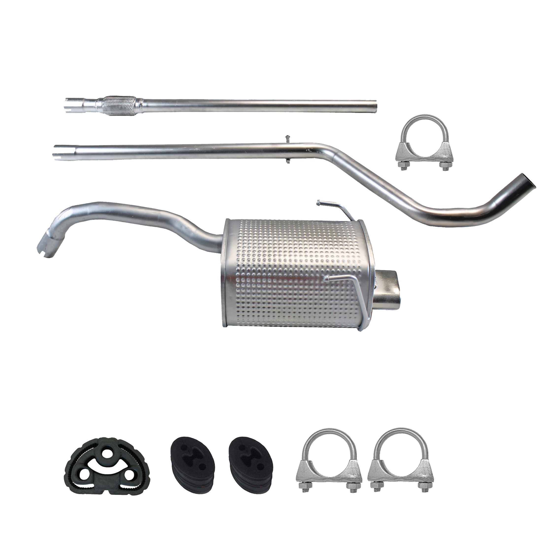 * Tłumiki posiadają system wygłuszający na bazie włókna szklanego dzięki temu nie zmienia się głośność układu wydechowego. * Produkt nie wymaga spawania !