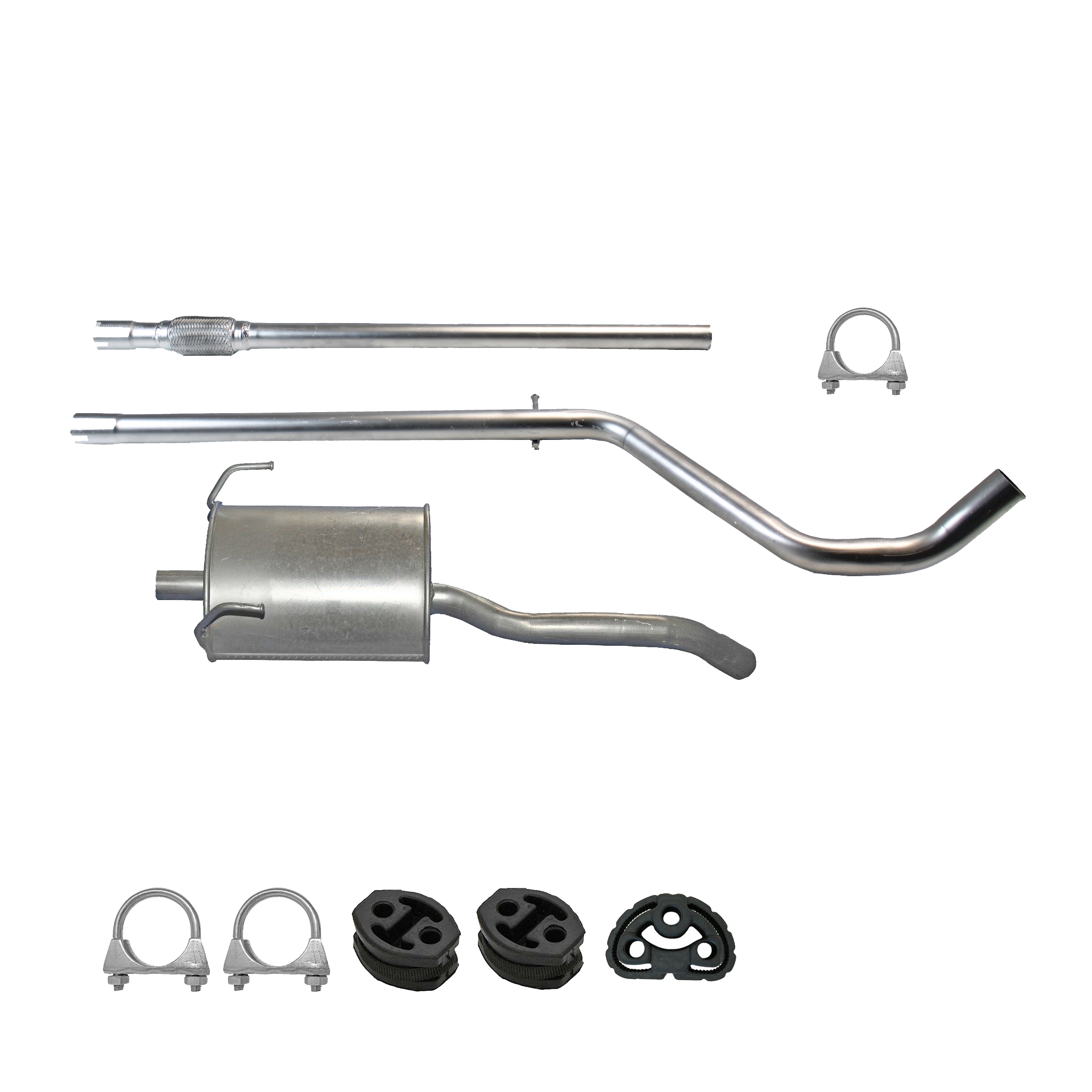 * Tłumiki posiadają system wygłuszający na bazie włókna szklanego dzięki temu nie zmienia się głośność układu wydechowego. * Produkt nie wymaga spawania !