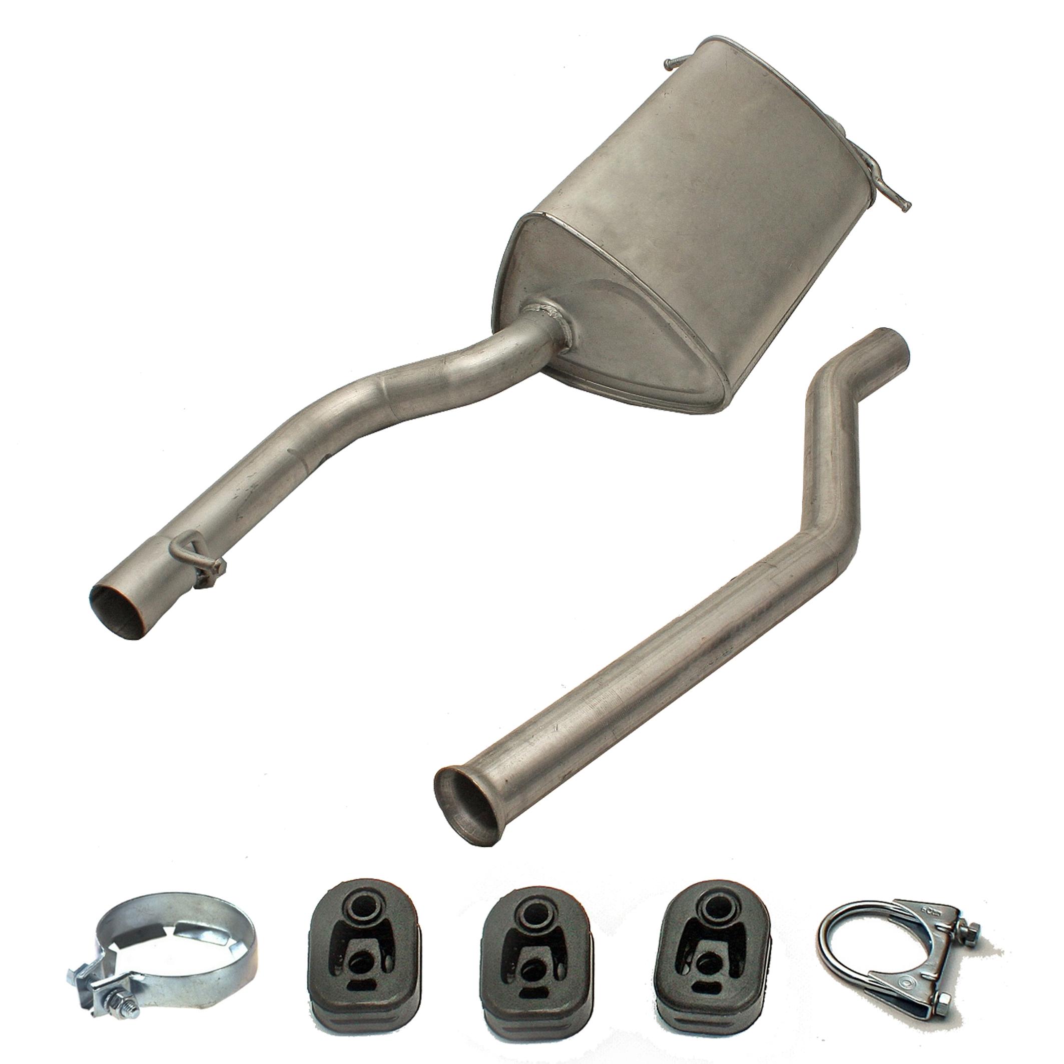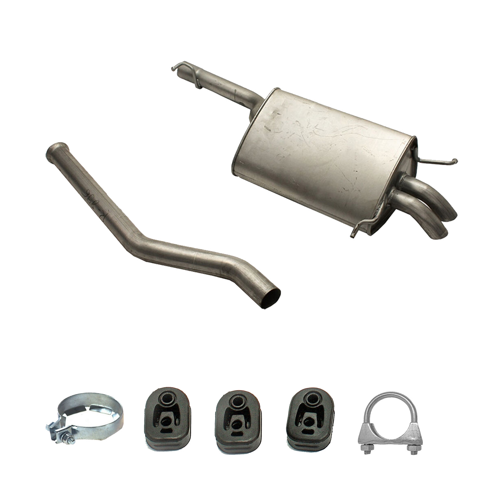 * Tłumiki posiadają system wygłuszający na bazie włókna szklanego dzięki temu nie zmienia się głośność układu wydechowego. * Produkt nie wymaga spawania !
