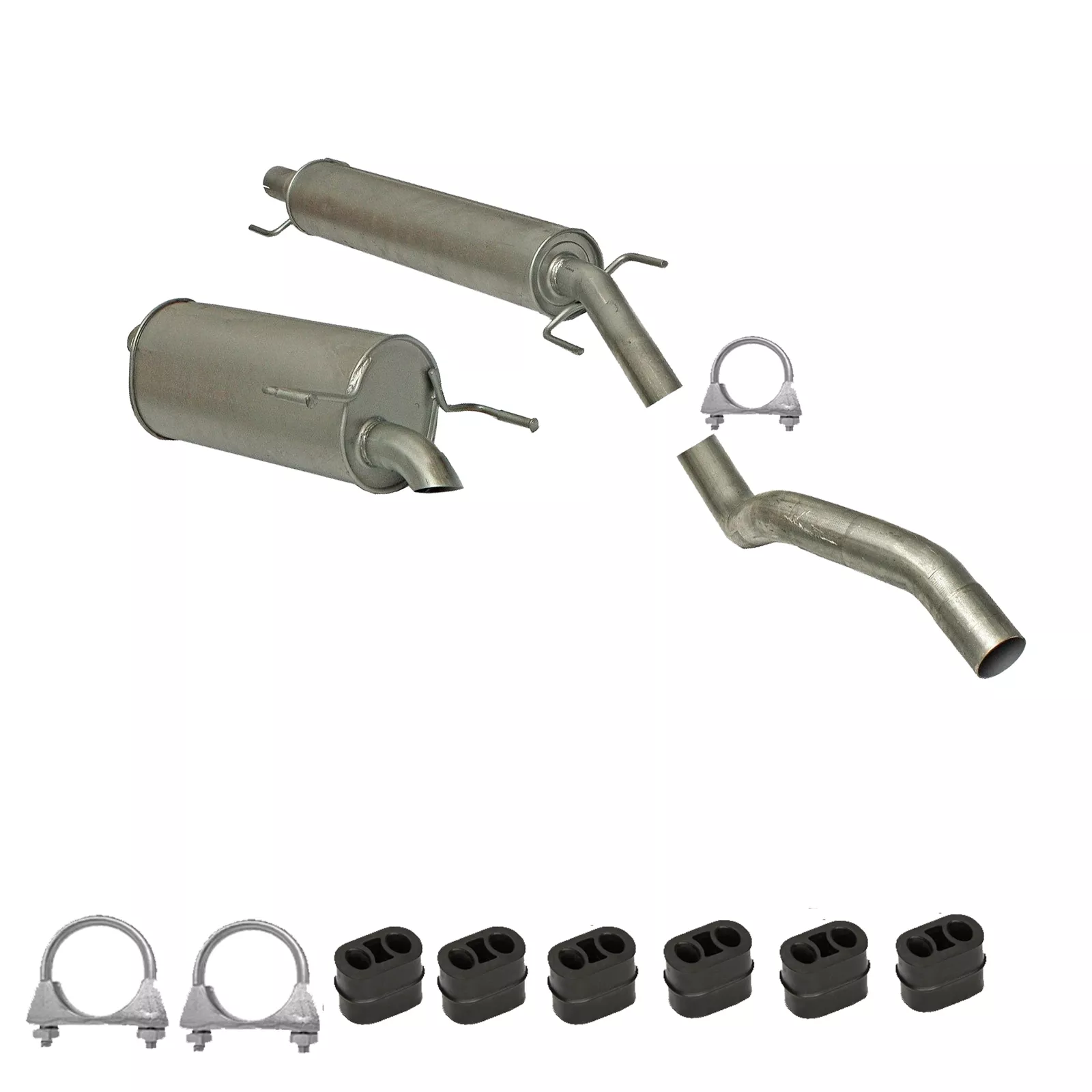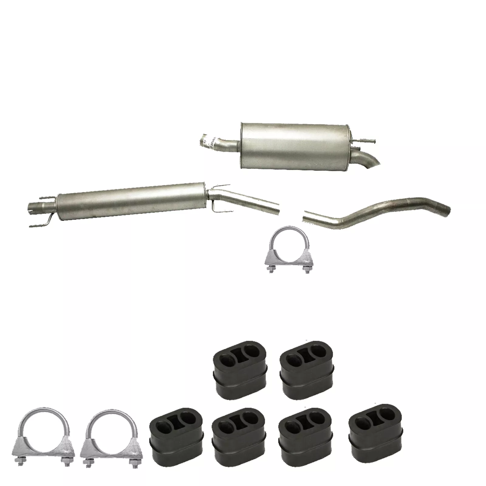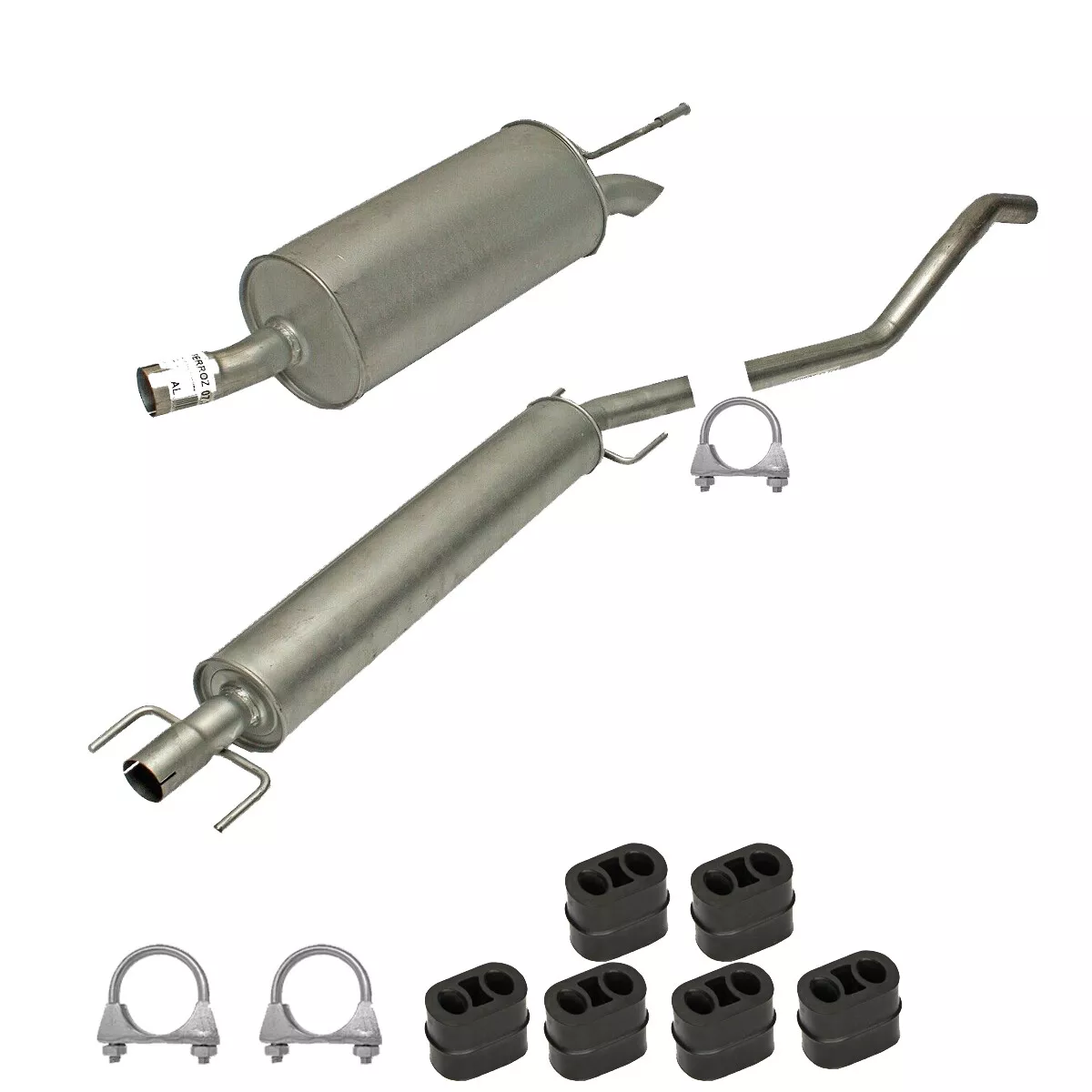 * Tłumiki posiadają system wygłuszający na bazie włókna szklanego dzięki temu nie zmienia się głośność układu wydechowego. * Produkt nie wymaga spawania !