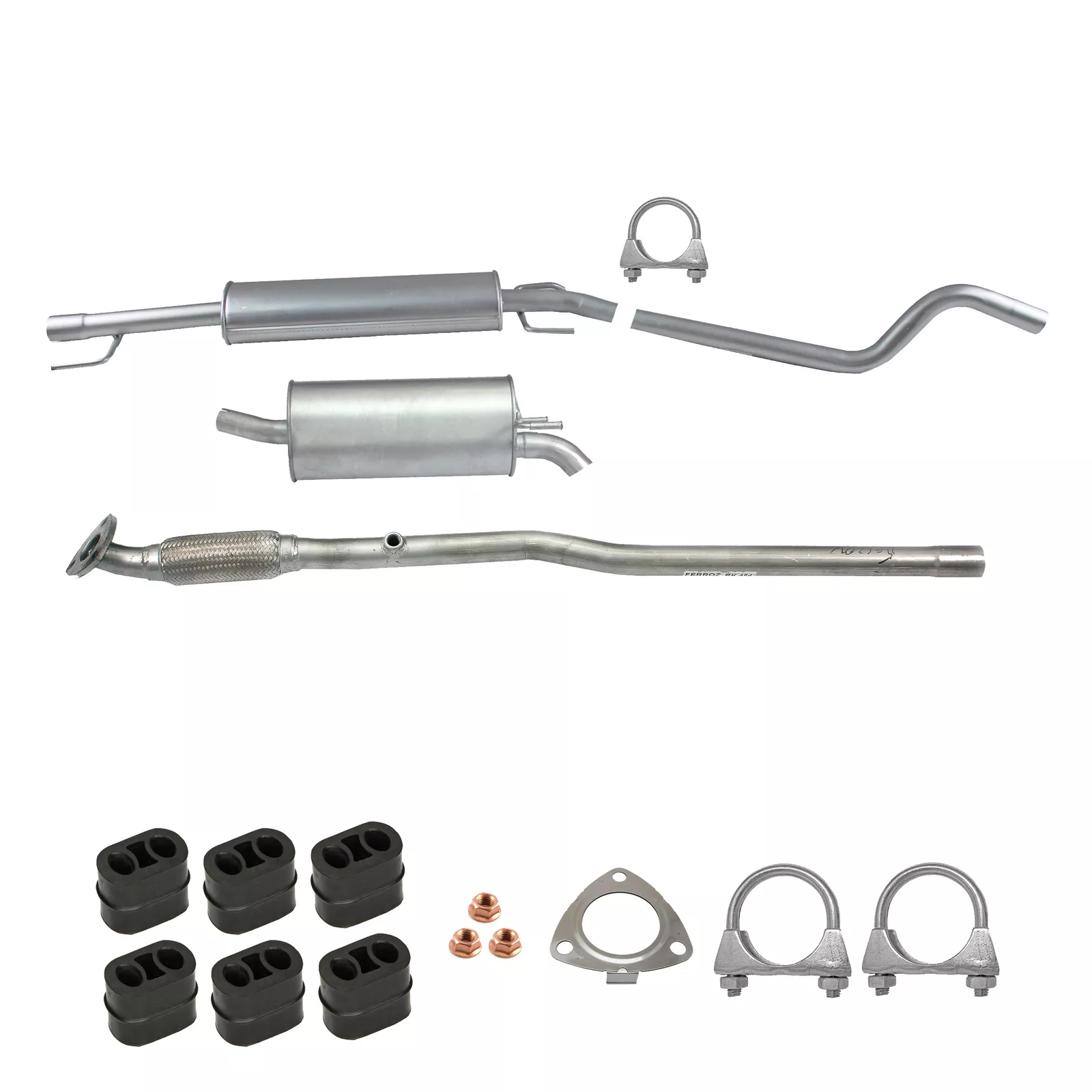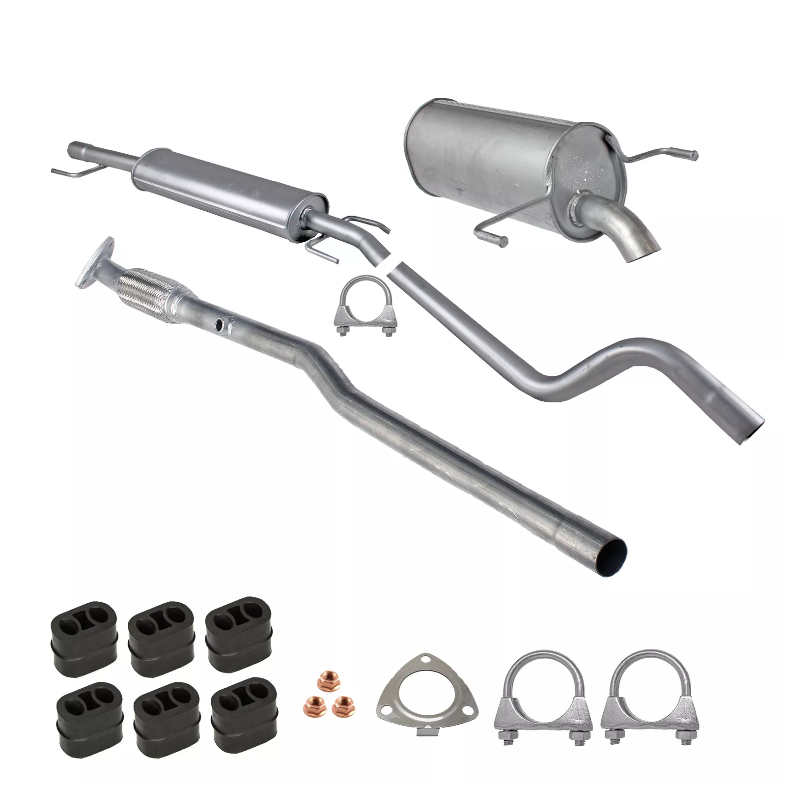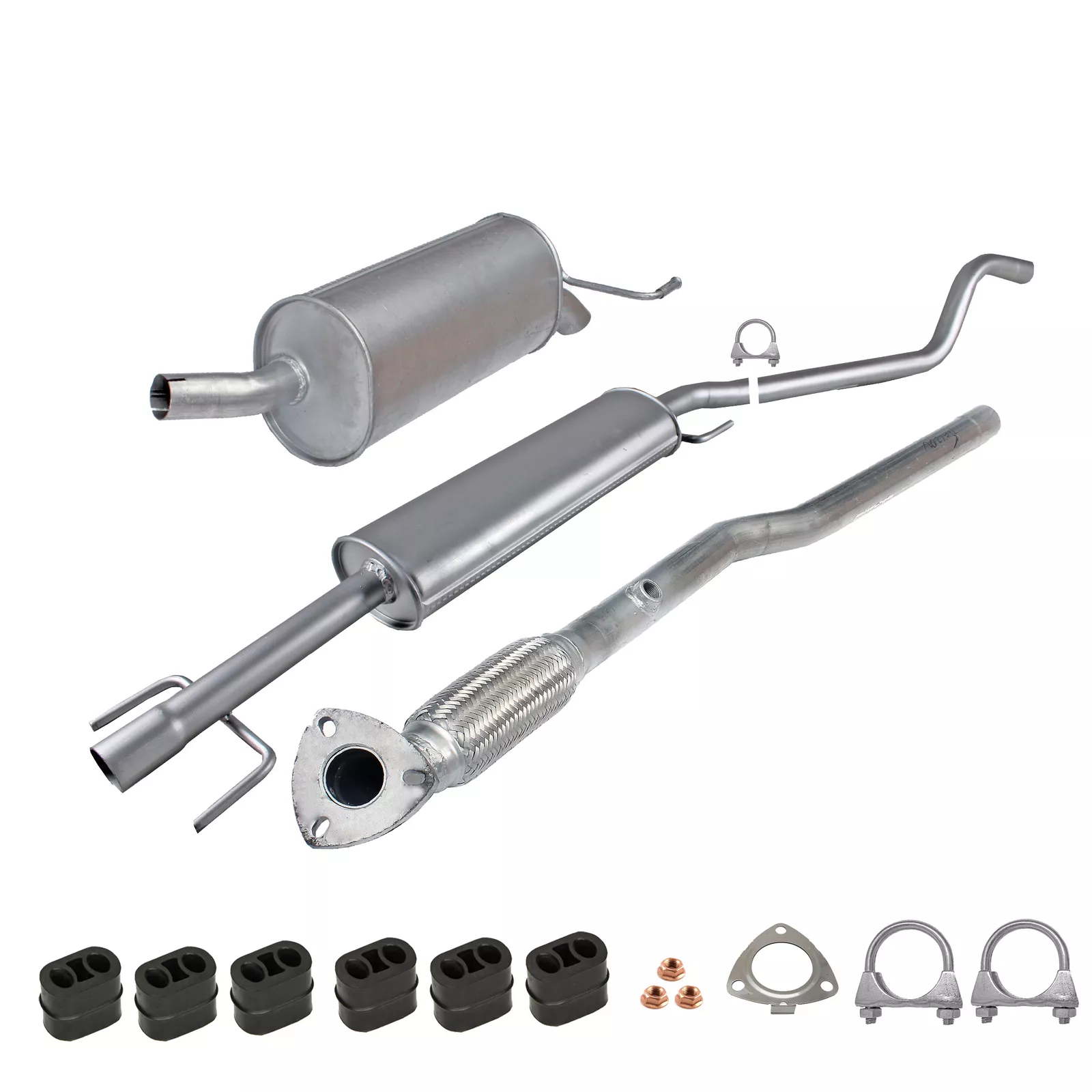 * Tłumiki posiadają system wygłuszający na bazie włókna szklanego dzięki temu nie zmienia się głośność układu wydechowego. * Produkt nie wymaga spawania !