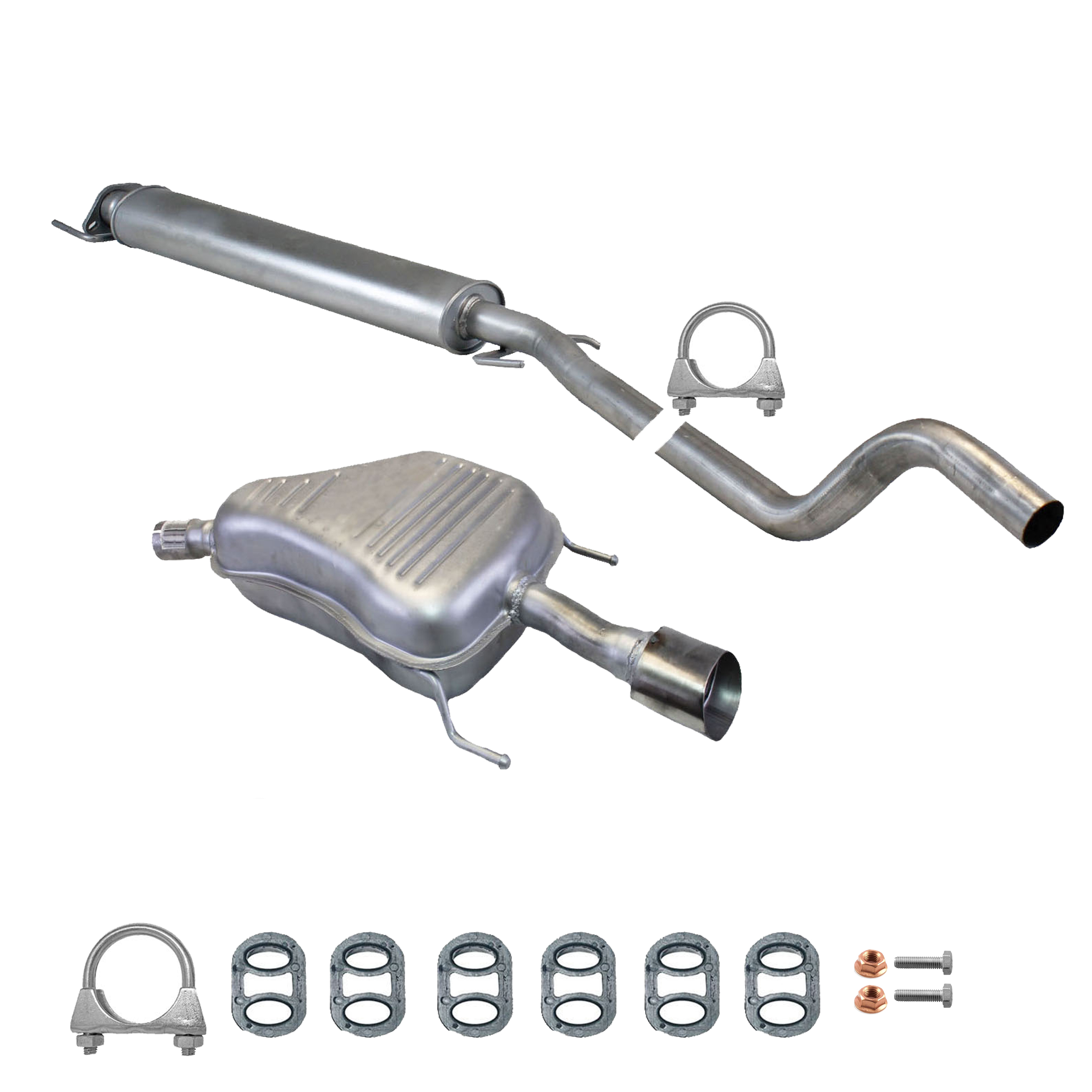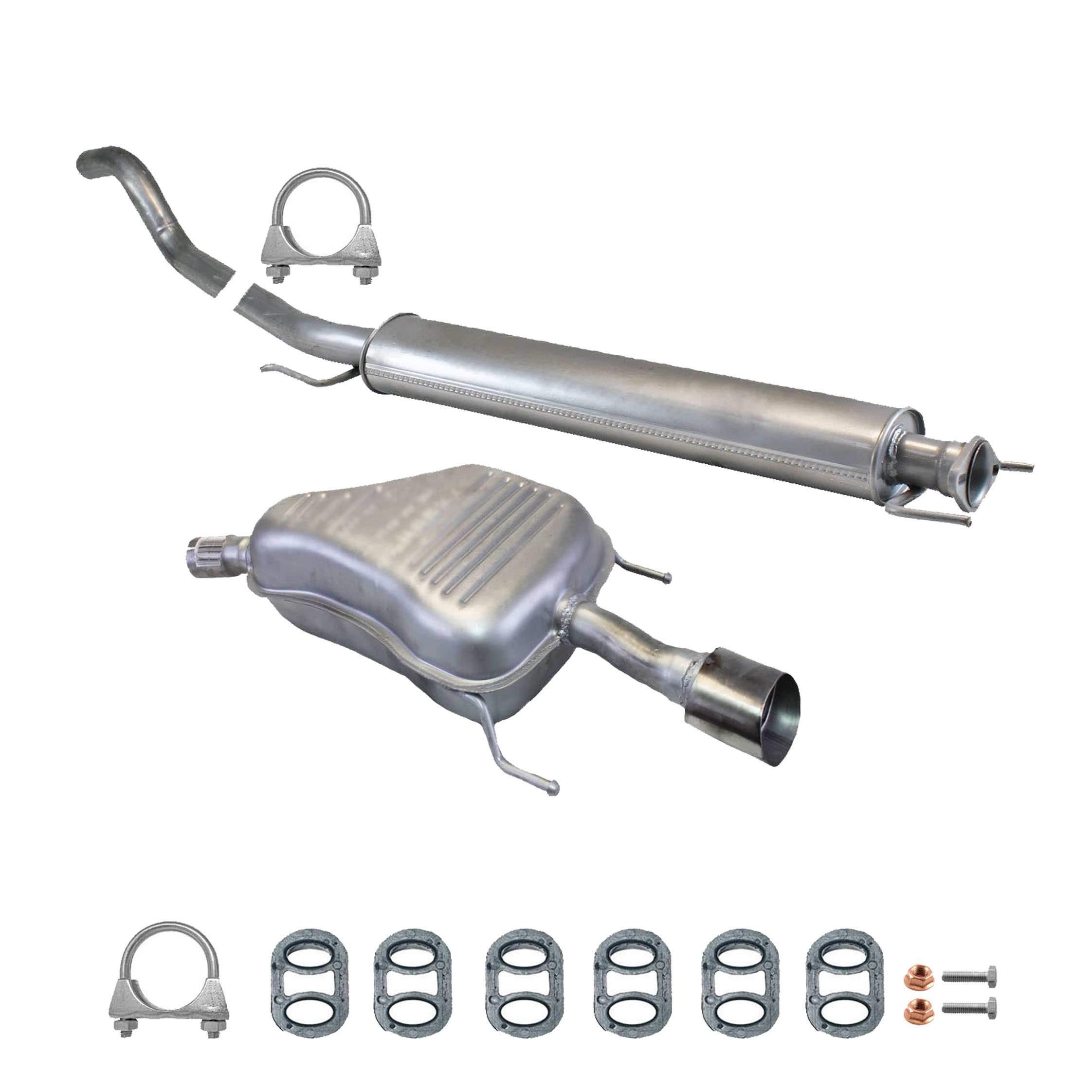 * Tłumiki posiadają system wygłuszający na bazie włókna szklanego dzięki temu nie zmienia się głośność układu wydechowego. * Produkt nie wymaga spawania !