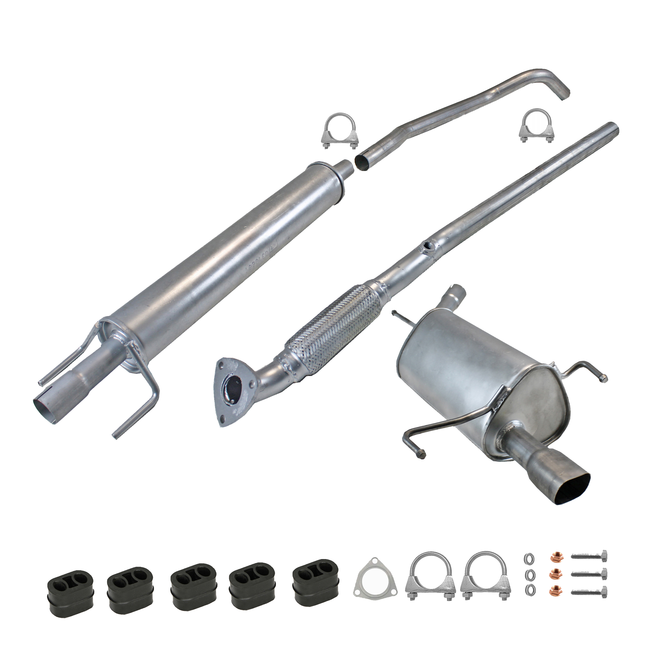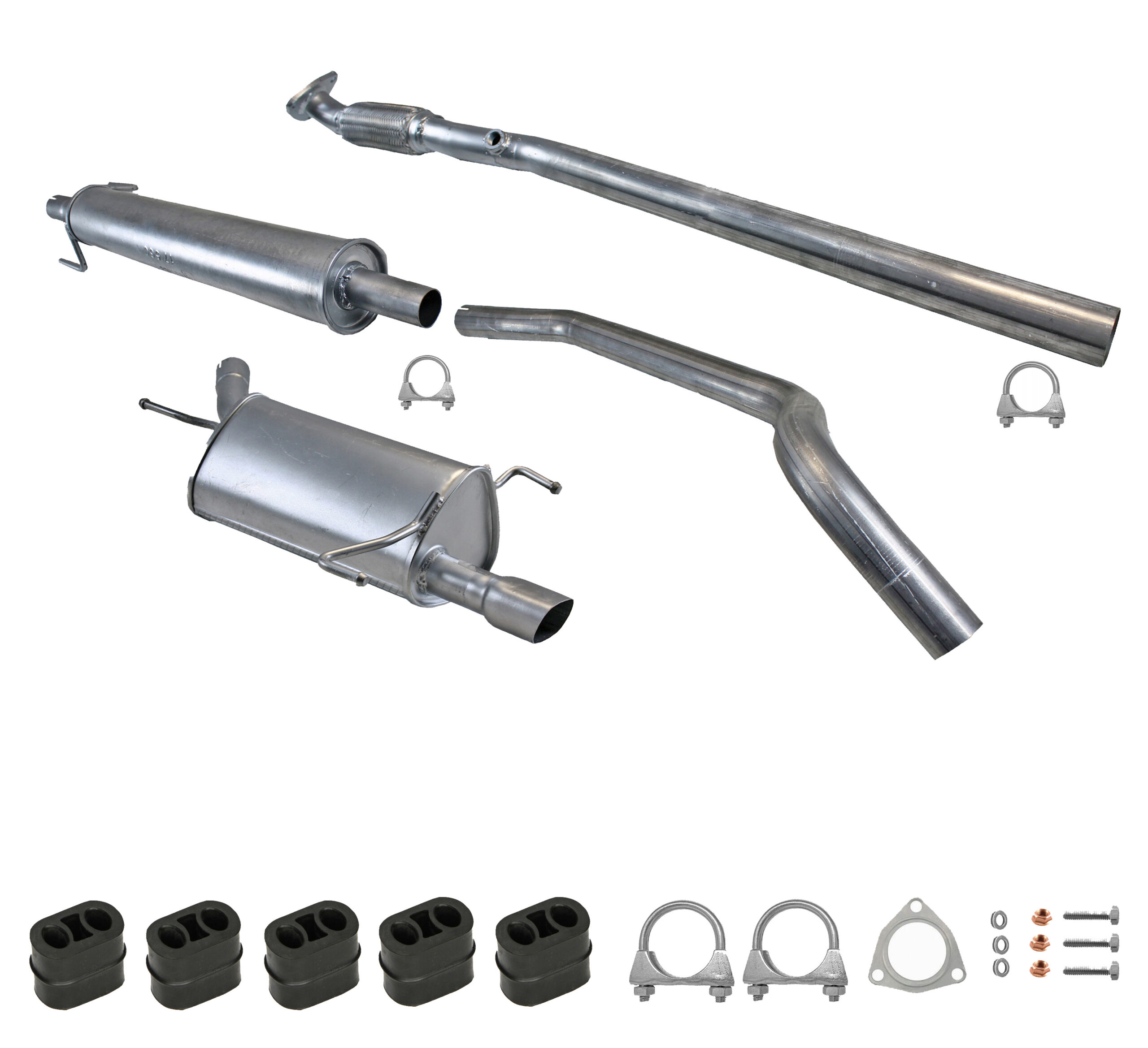* Tłumiki posiadają system wygłuszający na bazie włókna szklanego dzięki temu nie zmienia się głośność układu wydechowego. * Produkt nie wymaga spawania !