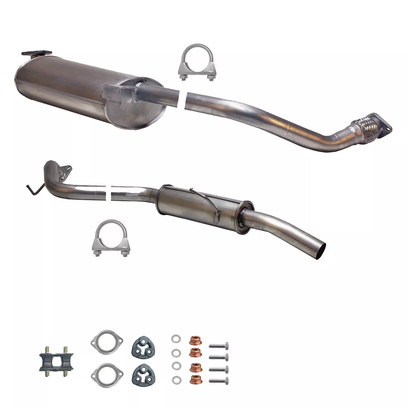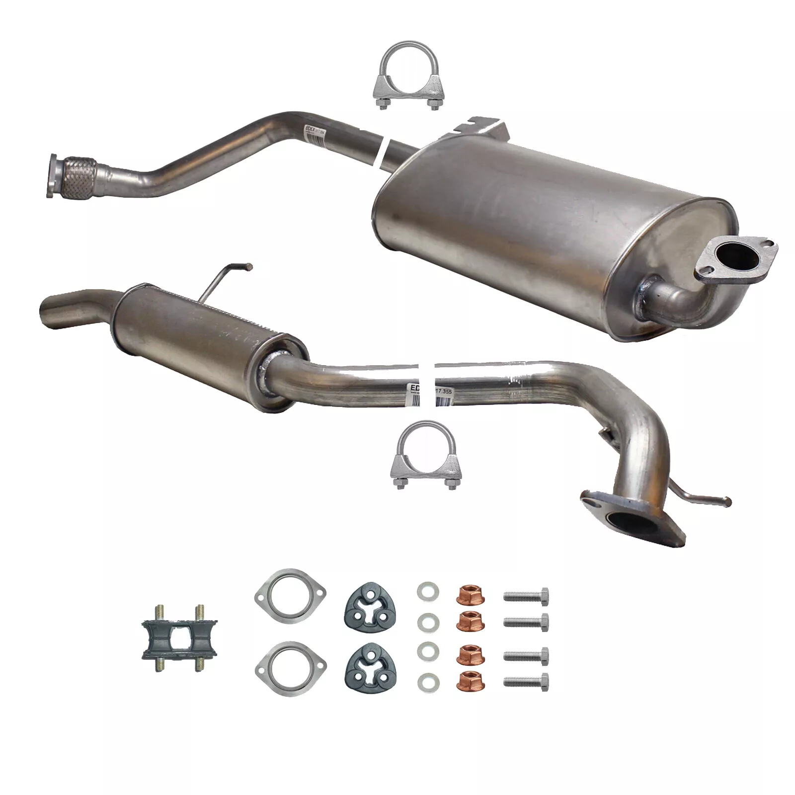 * Tłumiki posiadają system wygłuszający na bazie włókna szklanego dzięki temu nie zmienia się głośność układu wydechowego. * Produkt nie wymaga spawania !