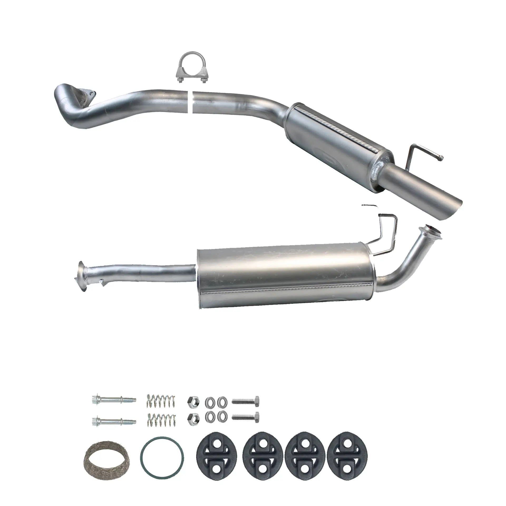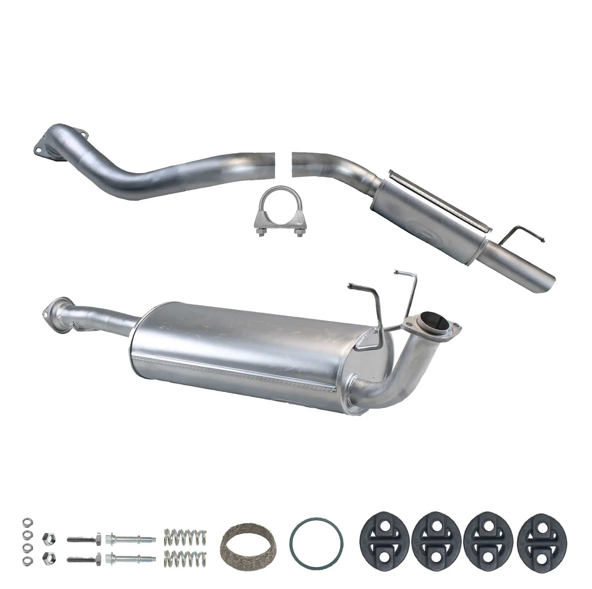 * Tłumiki posiadają system wygłuszający na bazie włókna szklanego dzięki temu nie zmienia się głośność układu wydechowego. * Produkt nie wymaga spawania !