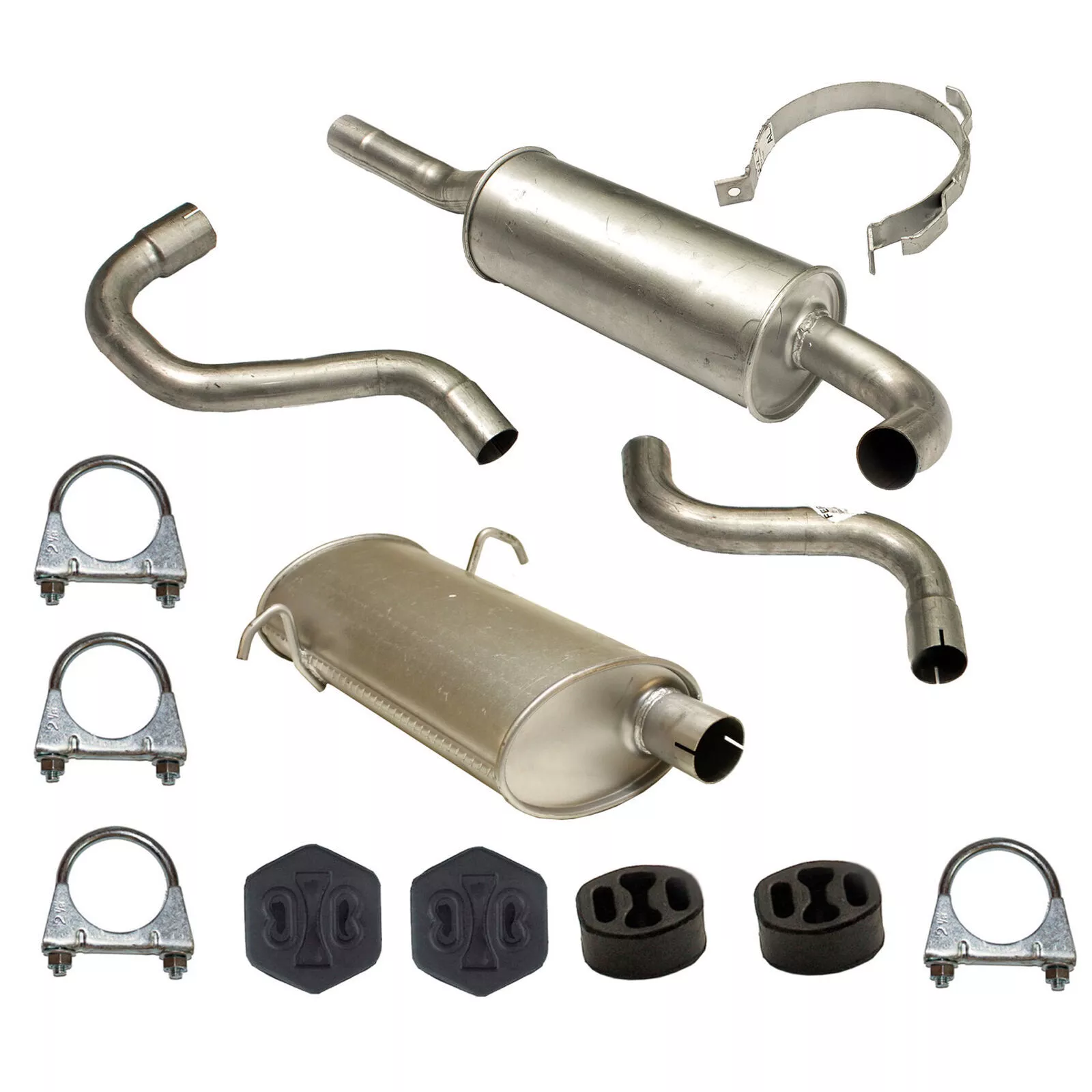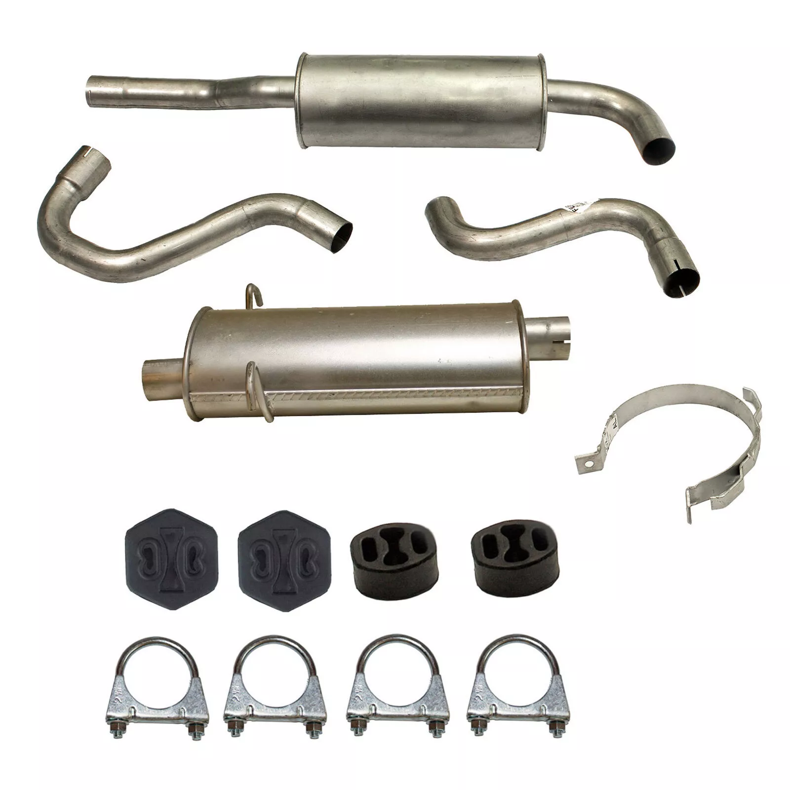 * Tłumiki posiadają system wygłuszający na bazie włókna szklanego dzięki temu nie zmienia się głośność układu wydechowego. * Produkt nie wymaga spawania !