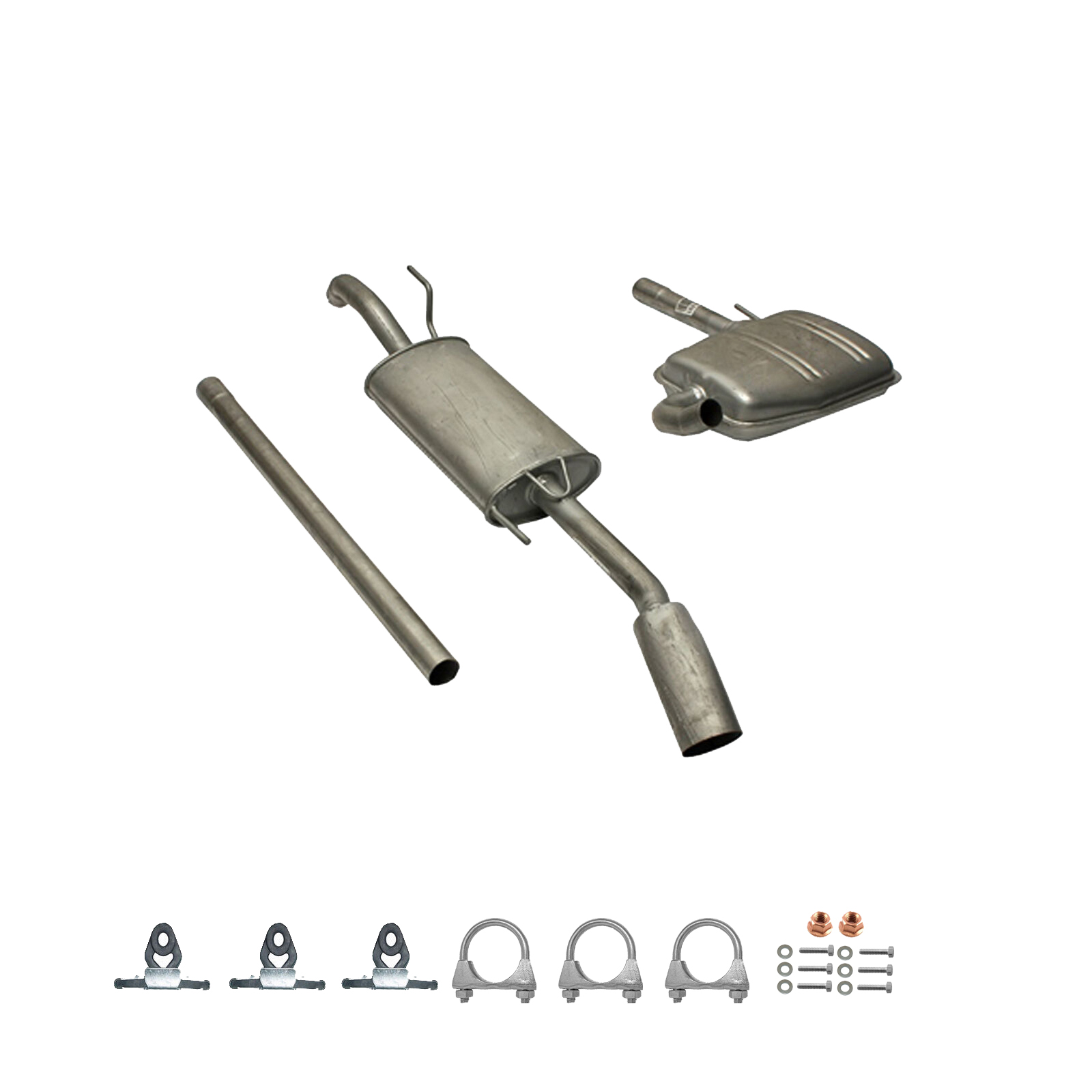 * Tłumiki posiadają system wygłuszający na bazie włókna szklanego dzięki temu nie zmienia się głośność układu wydechowego. * Produkt nie wymaga spawania !