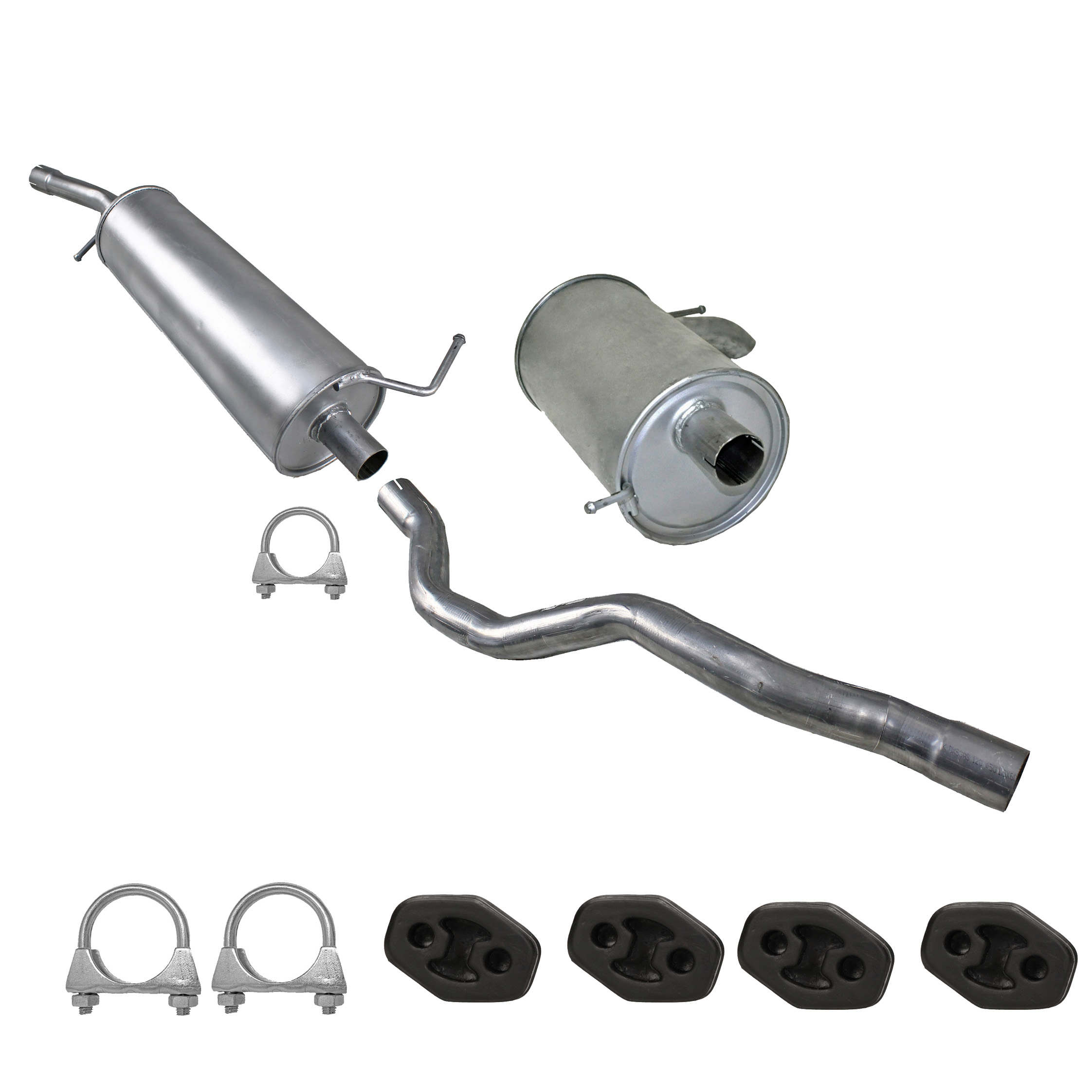* Tłumiki posiadają system wygłuszający na bazie włókna szklanego dzięki temu nie zmienia się głośność układu wydechowego. * Produkt nie wymaga spawania !