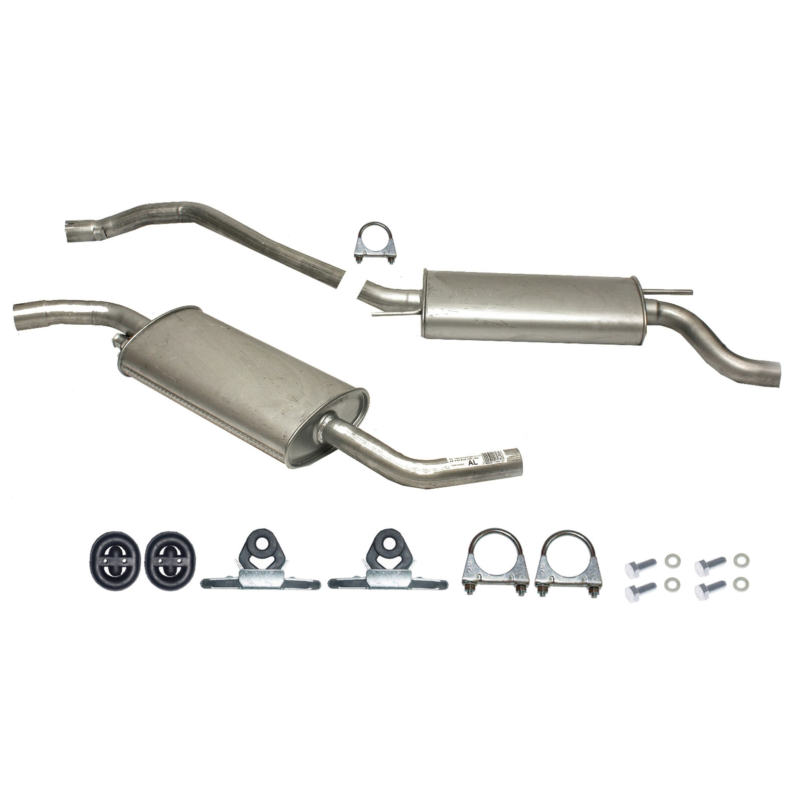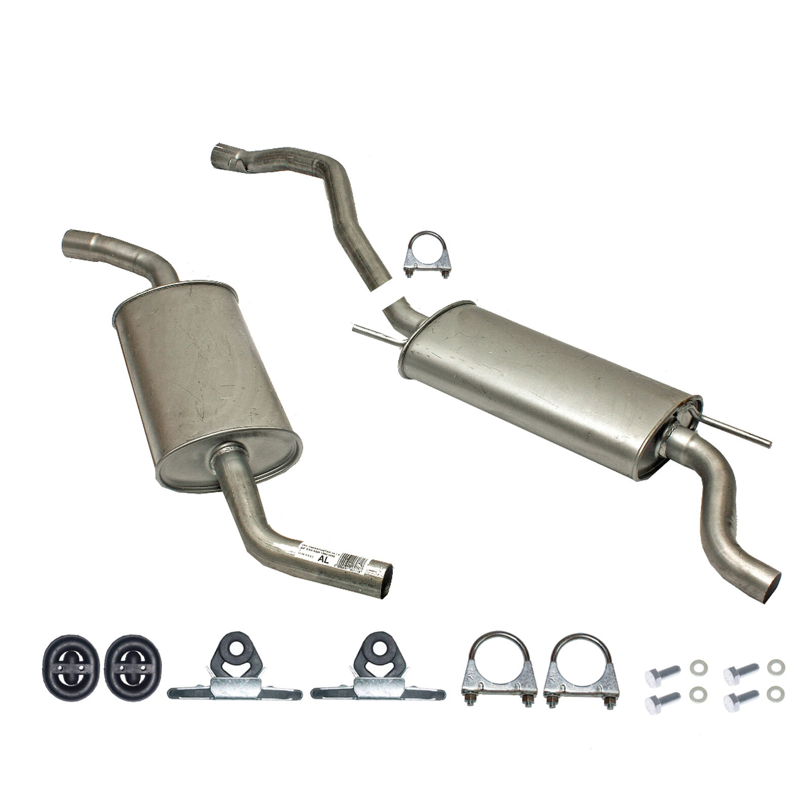 * Tłumiki posiadają system wygłuszający na bazie włókna szklanego dzięki temu nie zmienia się głośność układu wydechowego. * Produkt nie wymaga spawania !