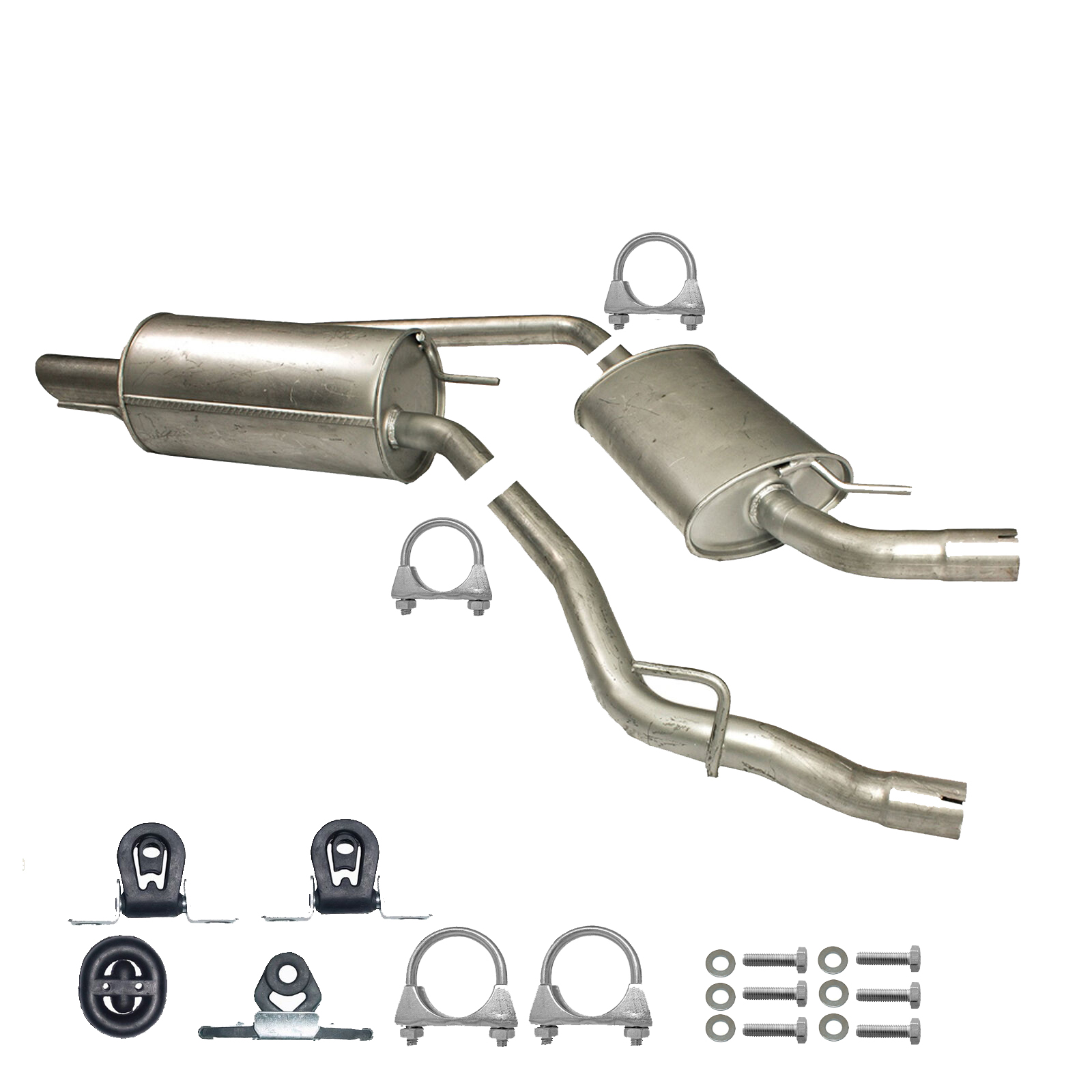 * Tłumiki posiadają system wygłuszający na bazie włókna szklanego dzięki temu nie zmienia się głośność układu wydechowego. * Produkt nie wymaga spawania !