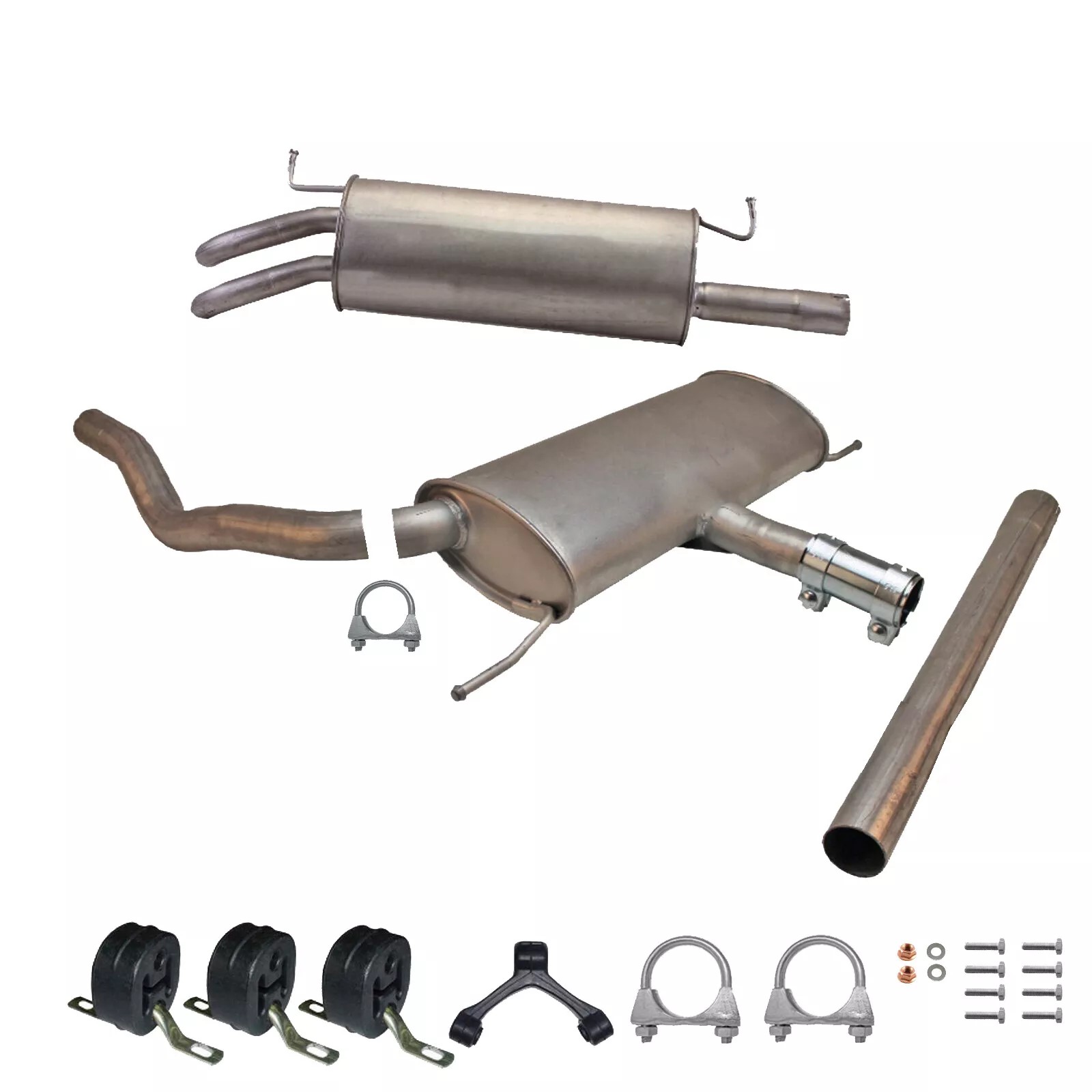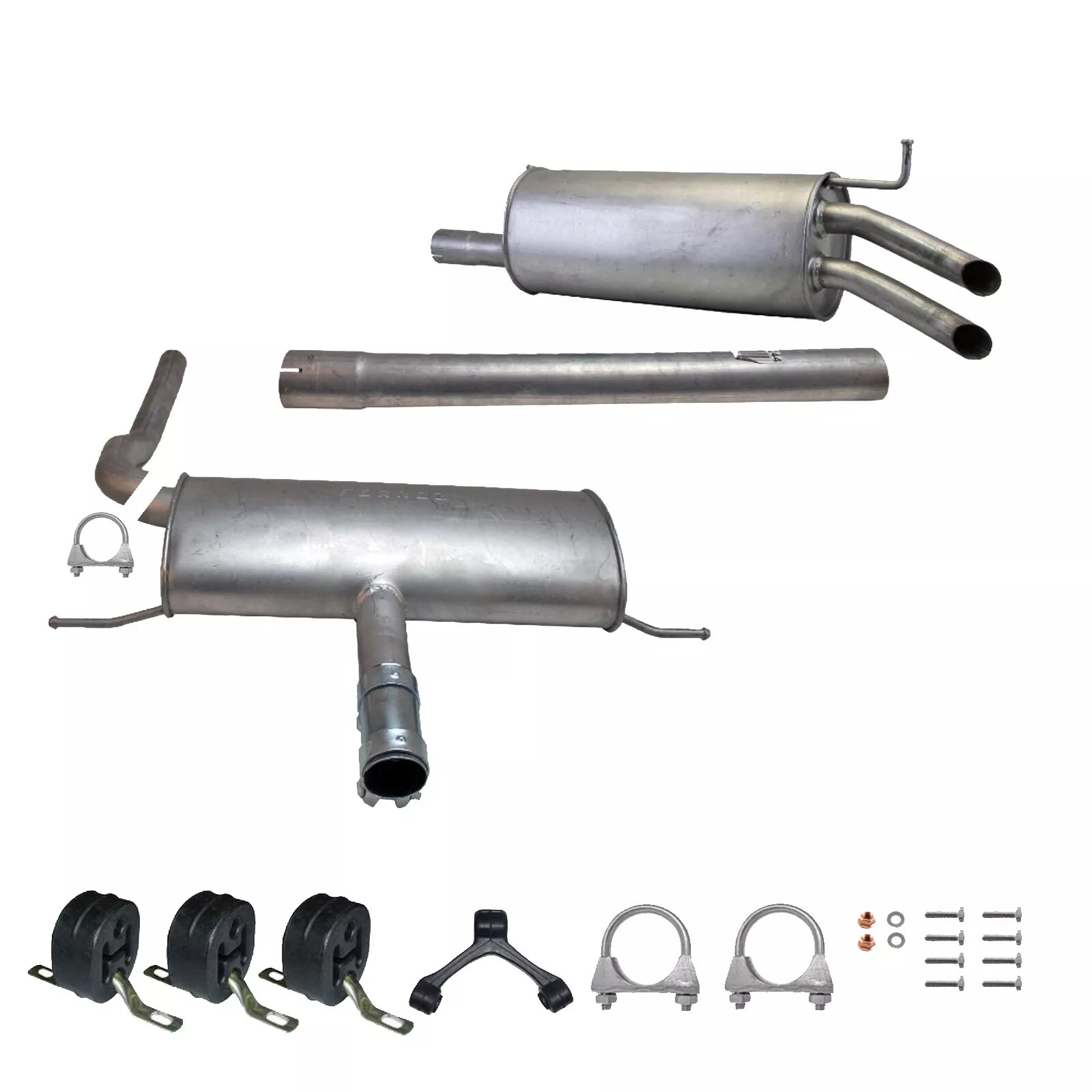 * Tłumiki posiadają system wygłuszający na bazie włókna szklanego dzięki temu nie zmienia się głośność układu wydechowego. * Produkt nie wymaga spawania !